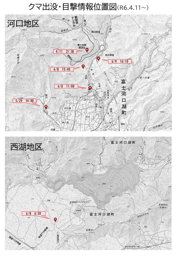 特に河口湖北岸の河口、大石地区にて目撃されているそうです。