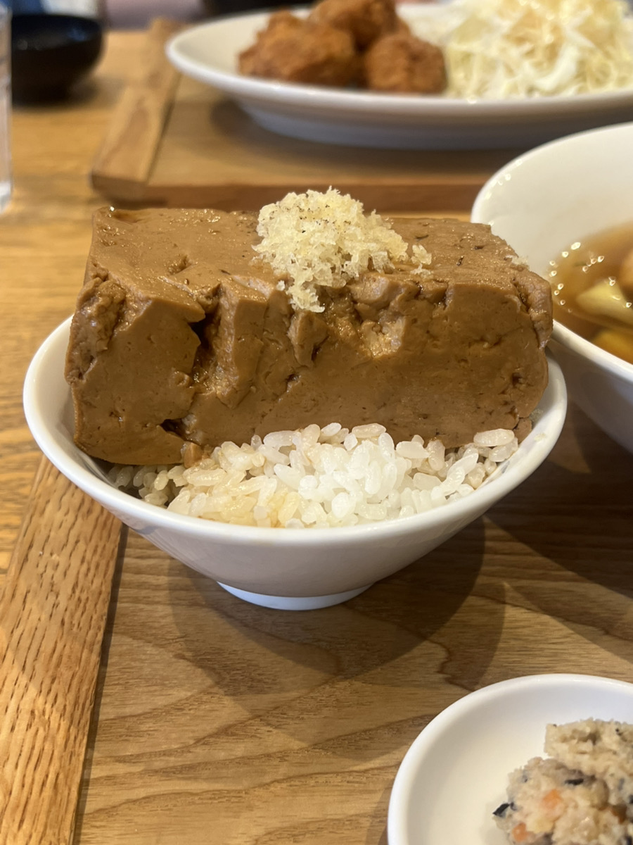 ご飯の上に味が染みこみまくった豆腐がどーーんと乗ったご飯です。