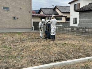 地面へ鉄の棒を貫入させ、おもりを乗せて回転させた時の