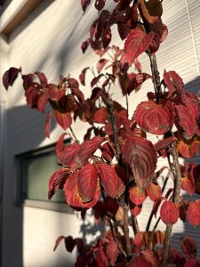 庭のヤマボウシも赤く紅葉して 秋だな~ としみじみ。