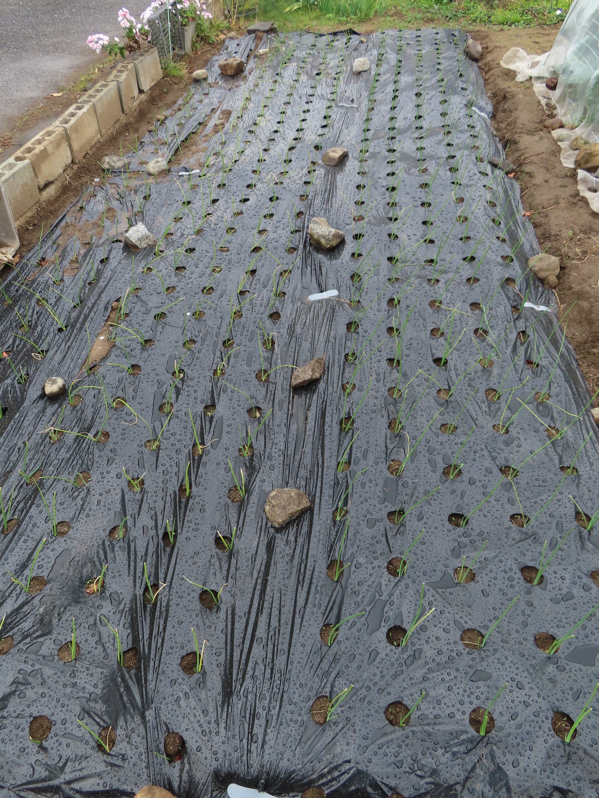 こんにちは! 半月前苗の三分の一ほど上をカットして植えたタマネギはしっかり根付いた様です。