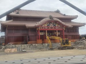 正殿火災から6年たちますが、まだまだ建設途中で柵超しにしか見ることが出来ません。