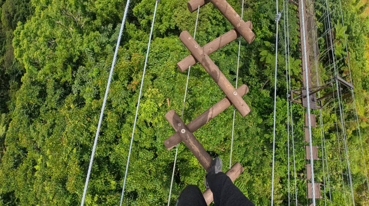 ゴールにたどり着いたときは手は命綱を思いきり掴んでいたようで手のひら真っ赤で力が入らず、足は筋肉痛のように、階段を降りるのも一苦労でした。