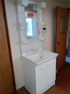 便器、洗面化粧台、シャワー水栓、湯沸かし器分岐水栓の工事です。