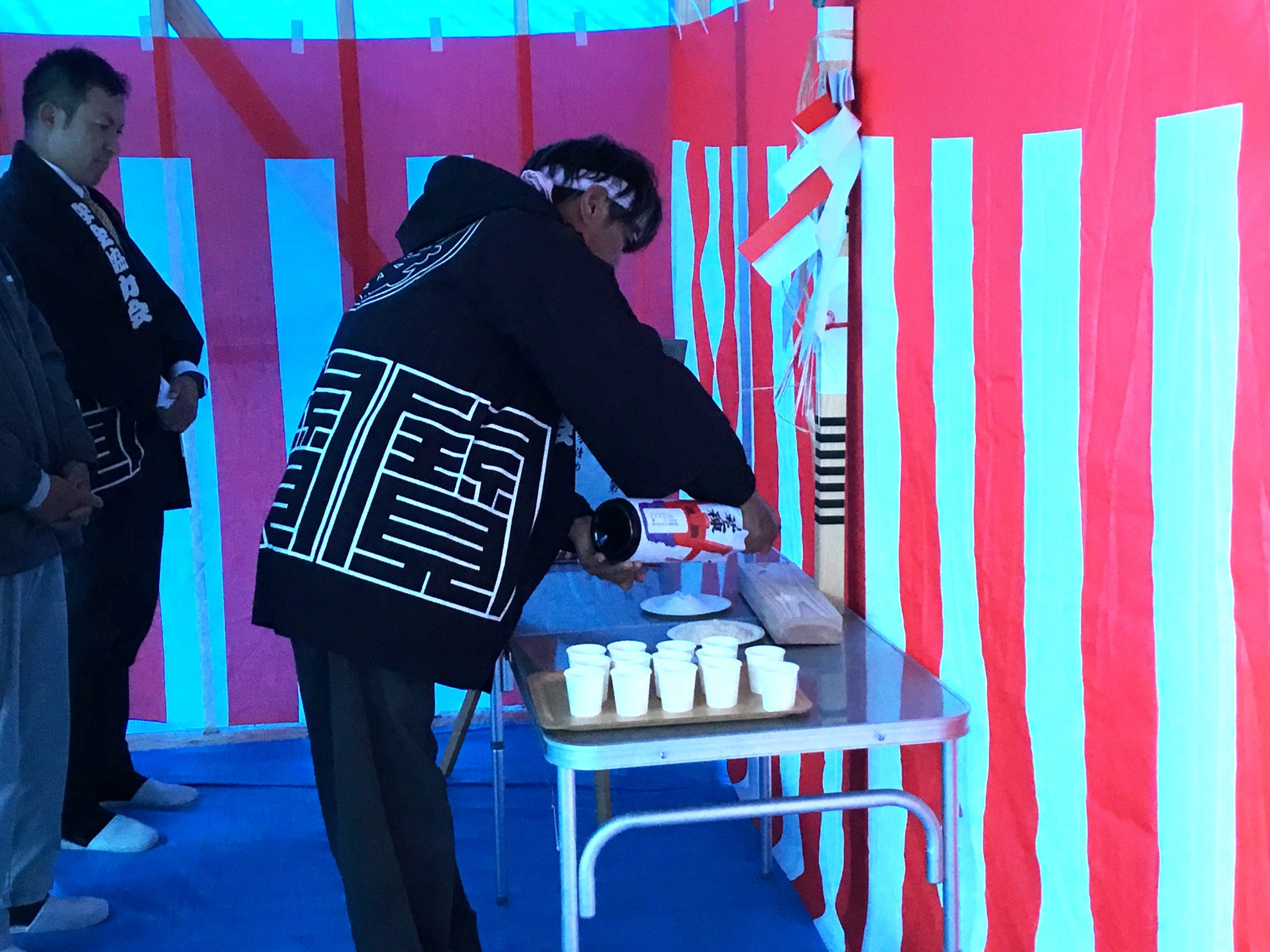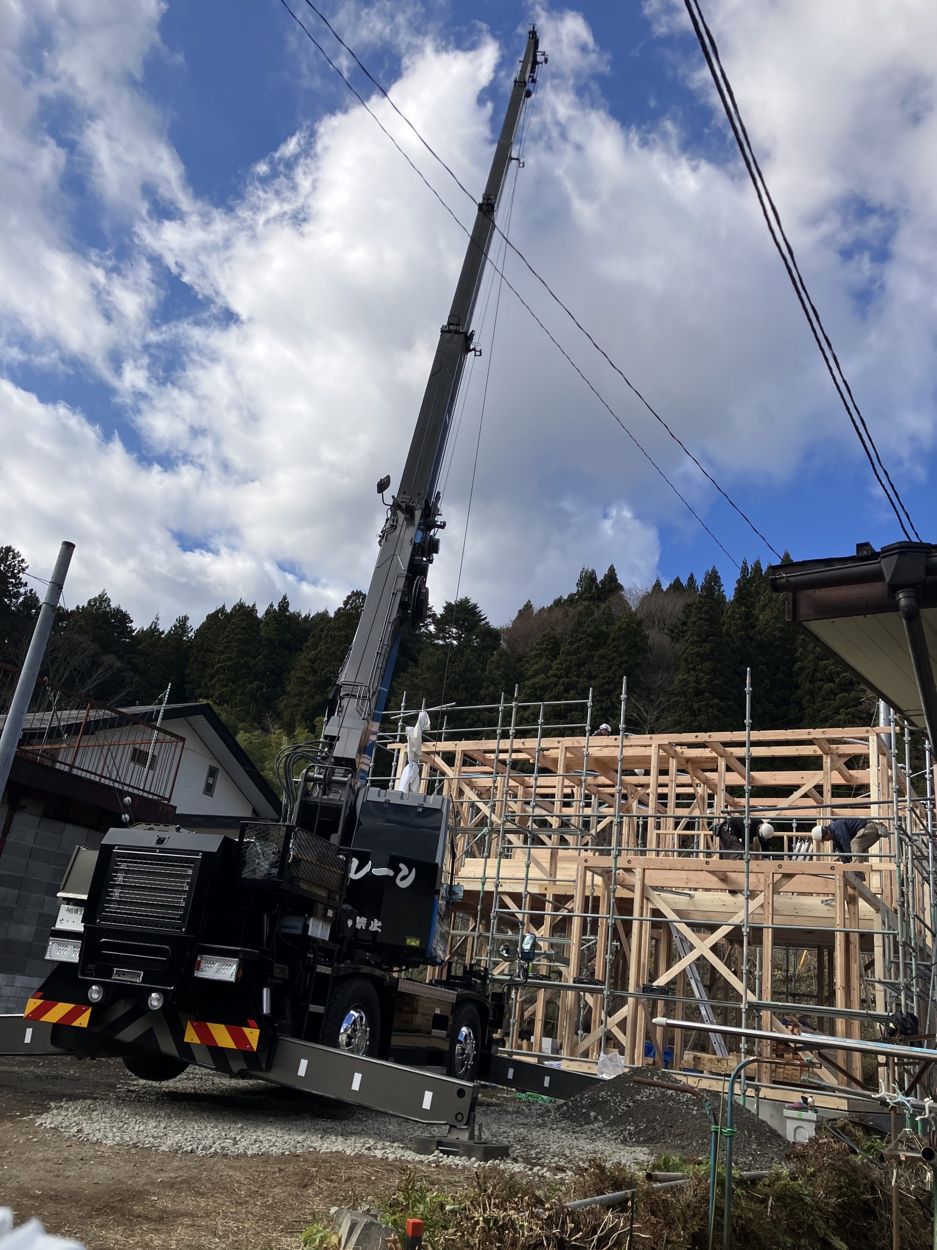 S様邸、棟が上がりました! 最初S様から上棟式はどうしようか…と迷われていましたが やはり家の柱が立ったこの時期は今だけと、 ご家族とご親戚の皆様でお休みを併せて頂き職人さんと一緒にお祝い致しました 晴れ渡った穏やかな中、工事の無事を祈りました