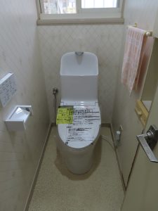 リフォーム工事を行いました。内装は既存のままで、1階トイレに設置した便器と同様の