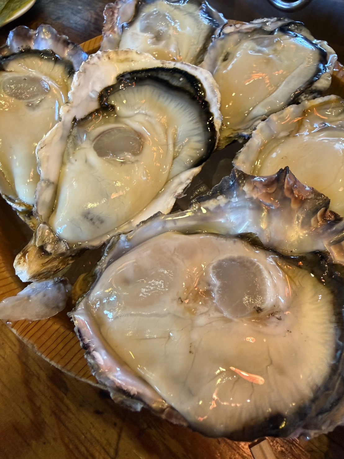 焼き牡蠣食べ放題のお店だったのですが、生牡蠣は別料金だったので、合計12個注文して半分ずつシェア。