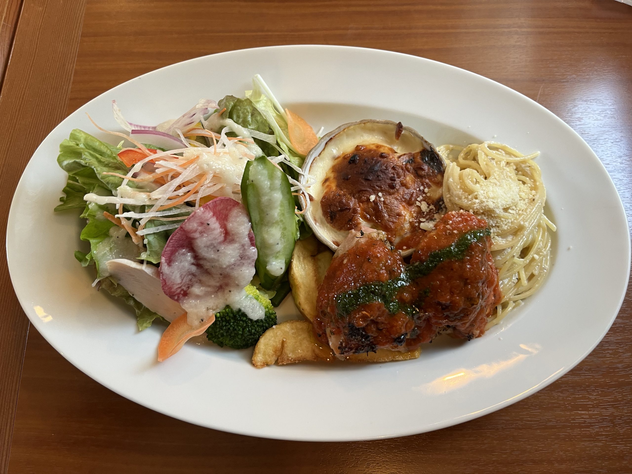 パスタにグラタン、パンも付いて