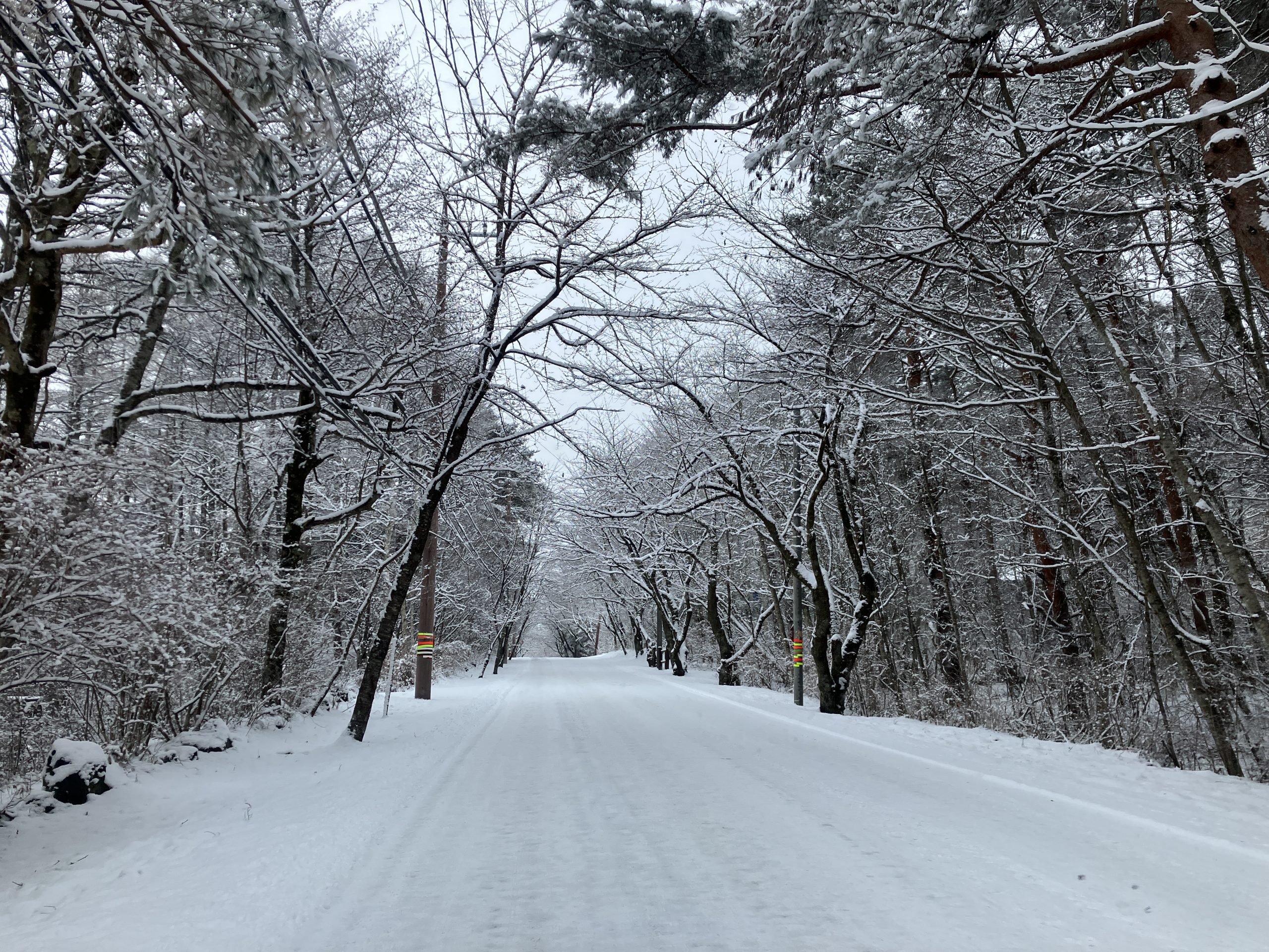 昨日から降り続いた雪 大雪を心配していましたが鳴沢村は10㎝程度の積雪となりました 別荘地内はあちこち通行止めで迂回路が設けられ、ナビを頼りに通行出来ました 去年は坂道でのスリップ事故が多かったので安心です