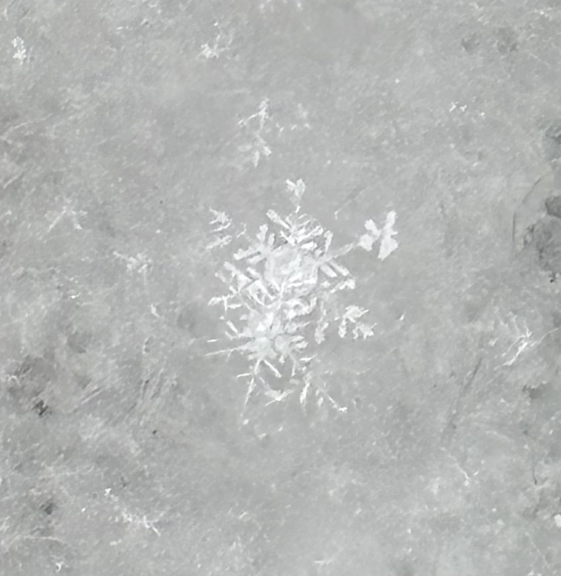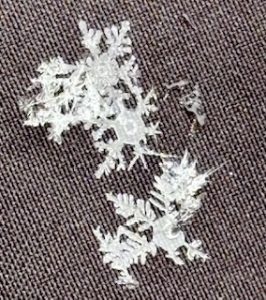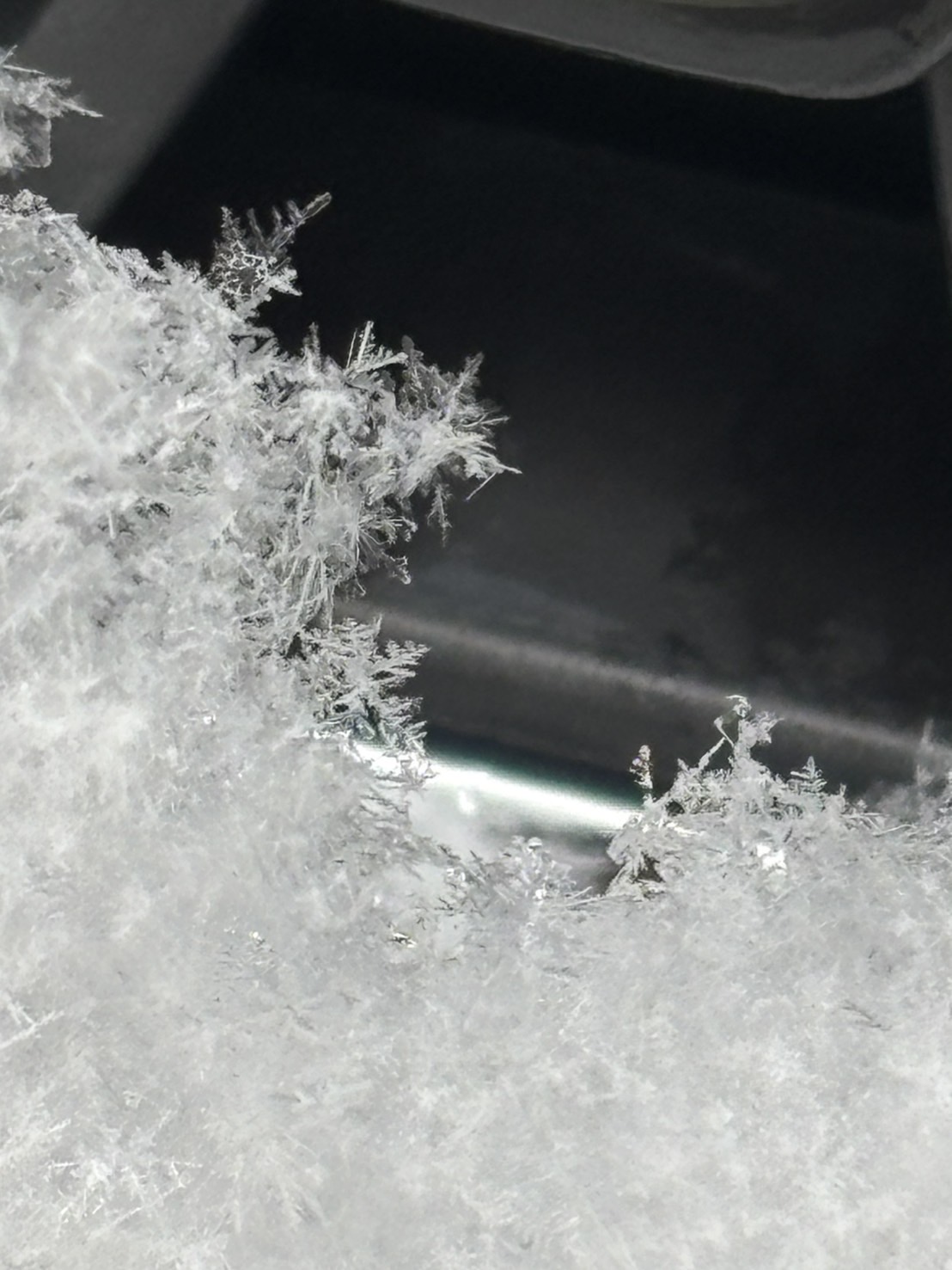降っている最中、雪の結晶撮影をスマホでチャレンジ。