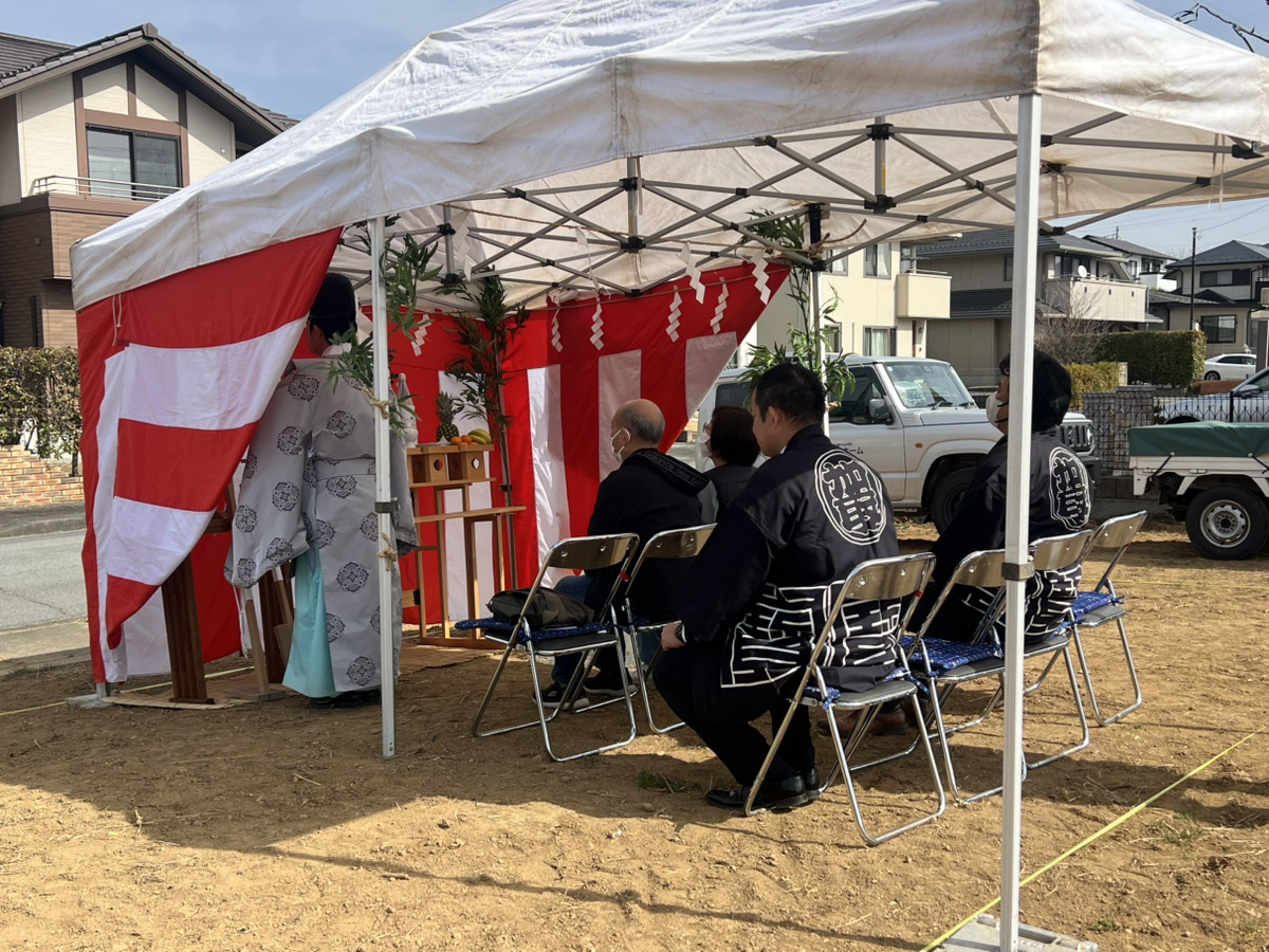 暖かく穏やかな気候のもと、O様ご夫婦と一緒に工事の安全をお祈りしました。