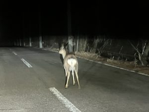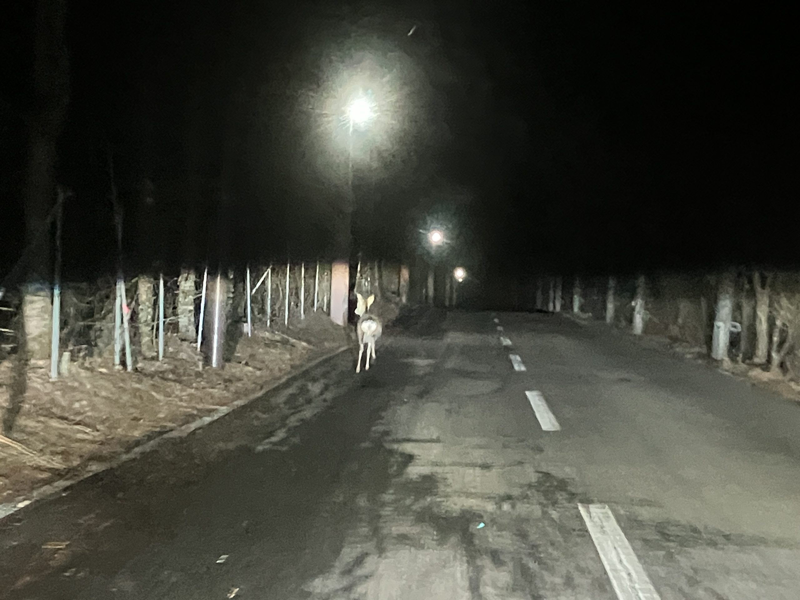 左右を鹿よけのネットが張ってあるので逃げられず、進行方向に逃げて行きます