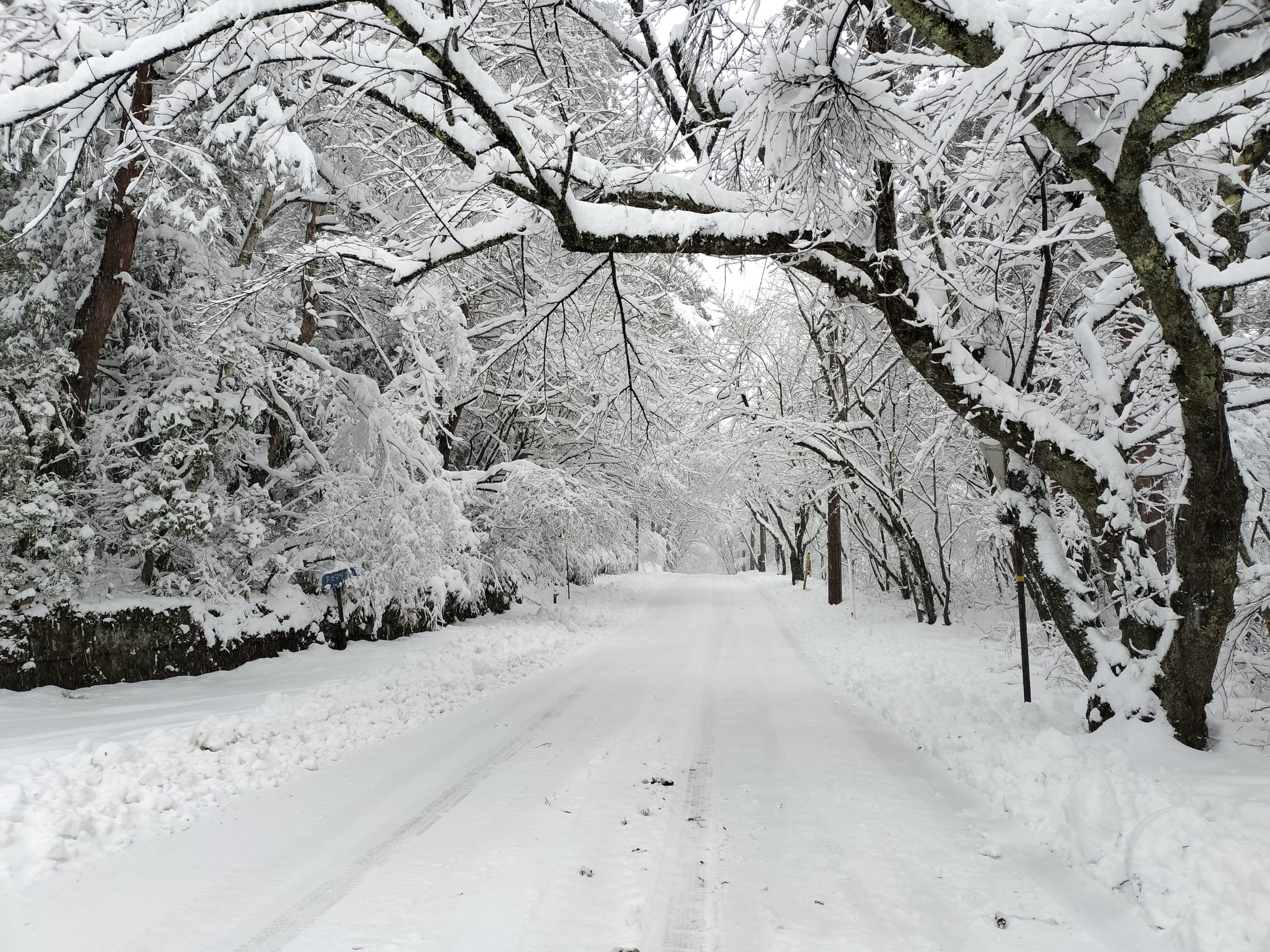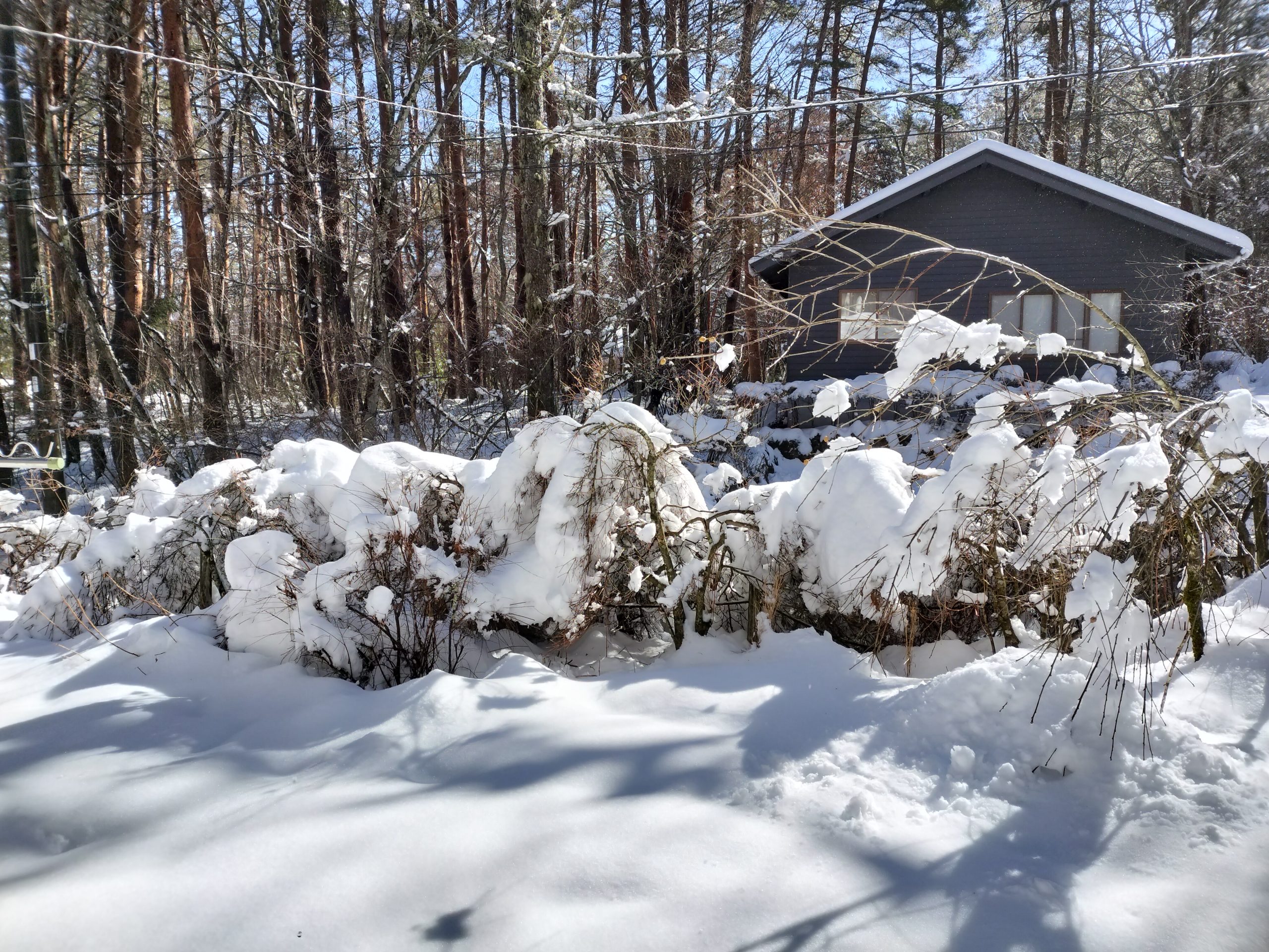 先週降った雪、木に張り付いて電線に引っかかっている所ばかり 翌日は倒木が多く道を塞いでしまっている所もありました
