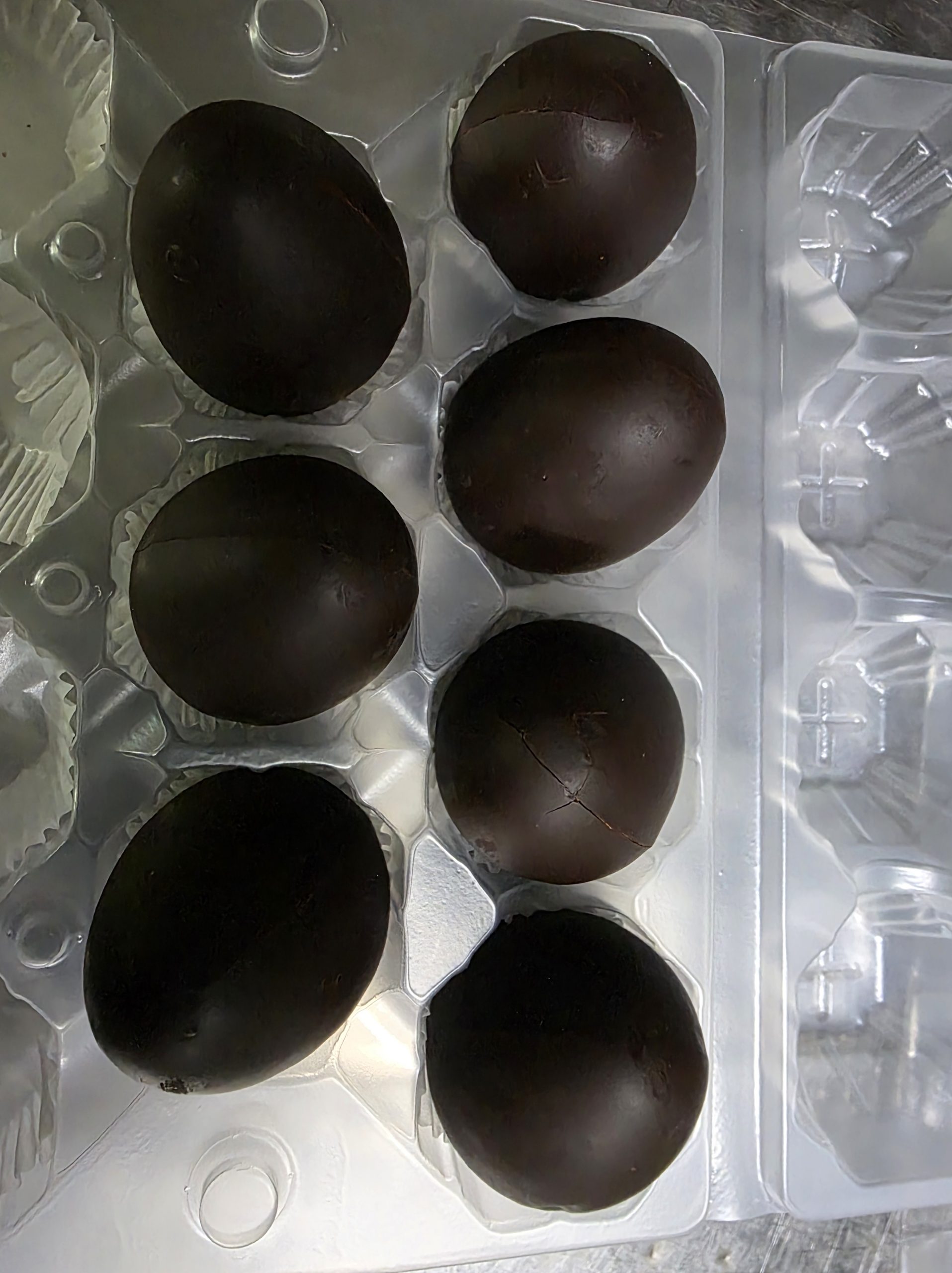 先日黒卵饅頭を食べました、外はチョコでコーティングされており中には卵の黄身をイメージした餡が入っておりとてもおいしかったです。