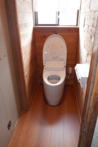 配管後に床を戻しリフォーム用フロアーを張り便器を設置しました。