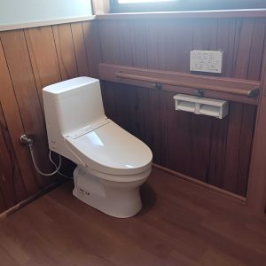 隣には小便器があり仕切りで狭く今回はこの仕切りを取り壊して一つのトイレスペースにリフォームしました。