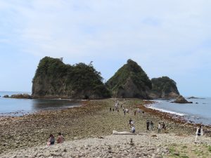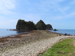 堂ヶ島の瀬浜海岸へ寄りました。日本でも珍しい現象で、このトンボロは静岡県の天然記念物にも