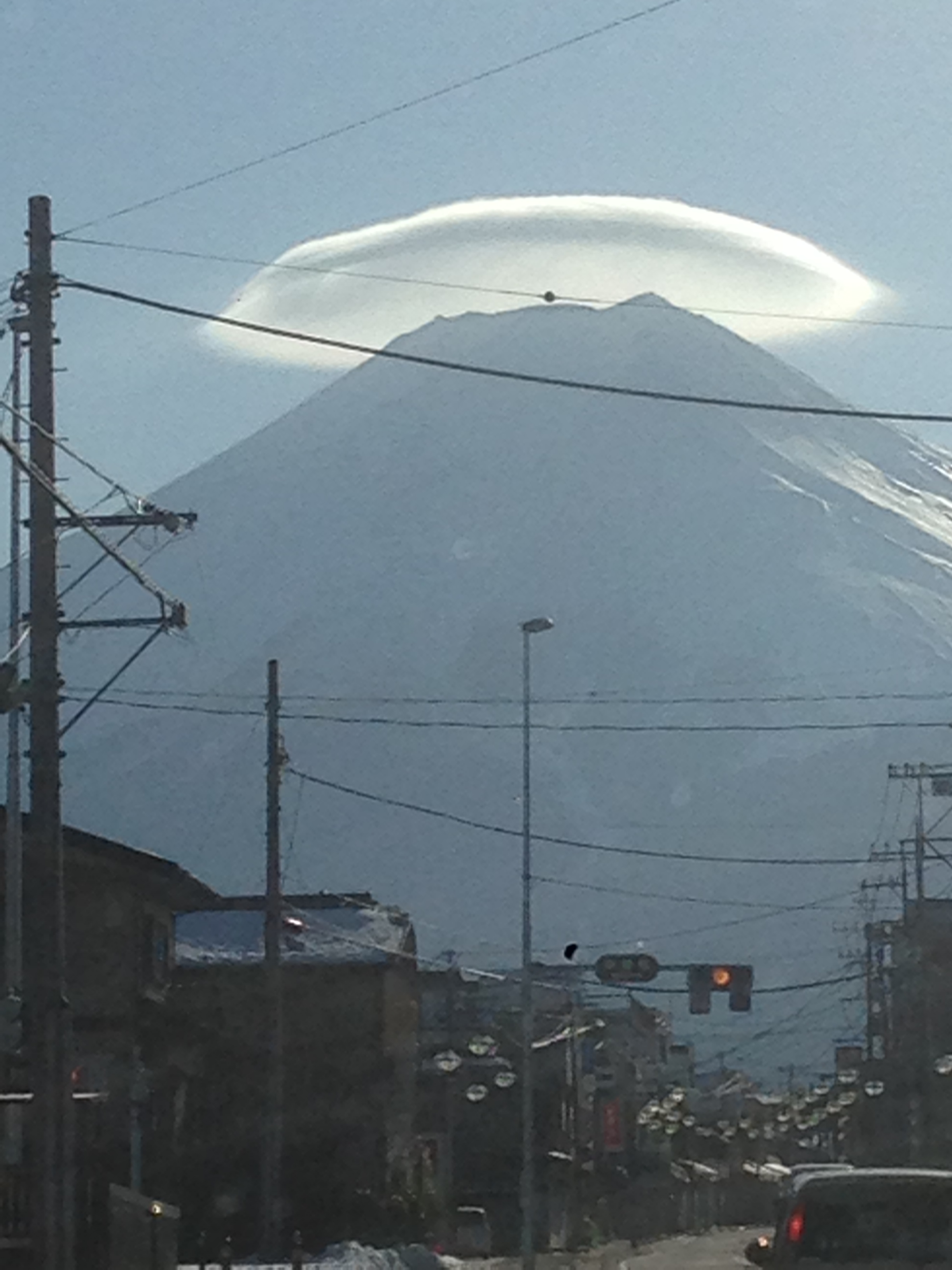 富士山にかかる雲を見て、昔から天気を予測して来ました。 「富士山に笠をかぶれば近いうちに雨、雪」 雨、雪になる確率は、冬は70%と統計からみても信頼性が高いと言われて いるそうです。 今日の富士山は、しっかりと「笠雲」になつているので 天気は下り坂のサイン! 予報だと、金曜日は雪! 大雪にならなければいいけど…………?
