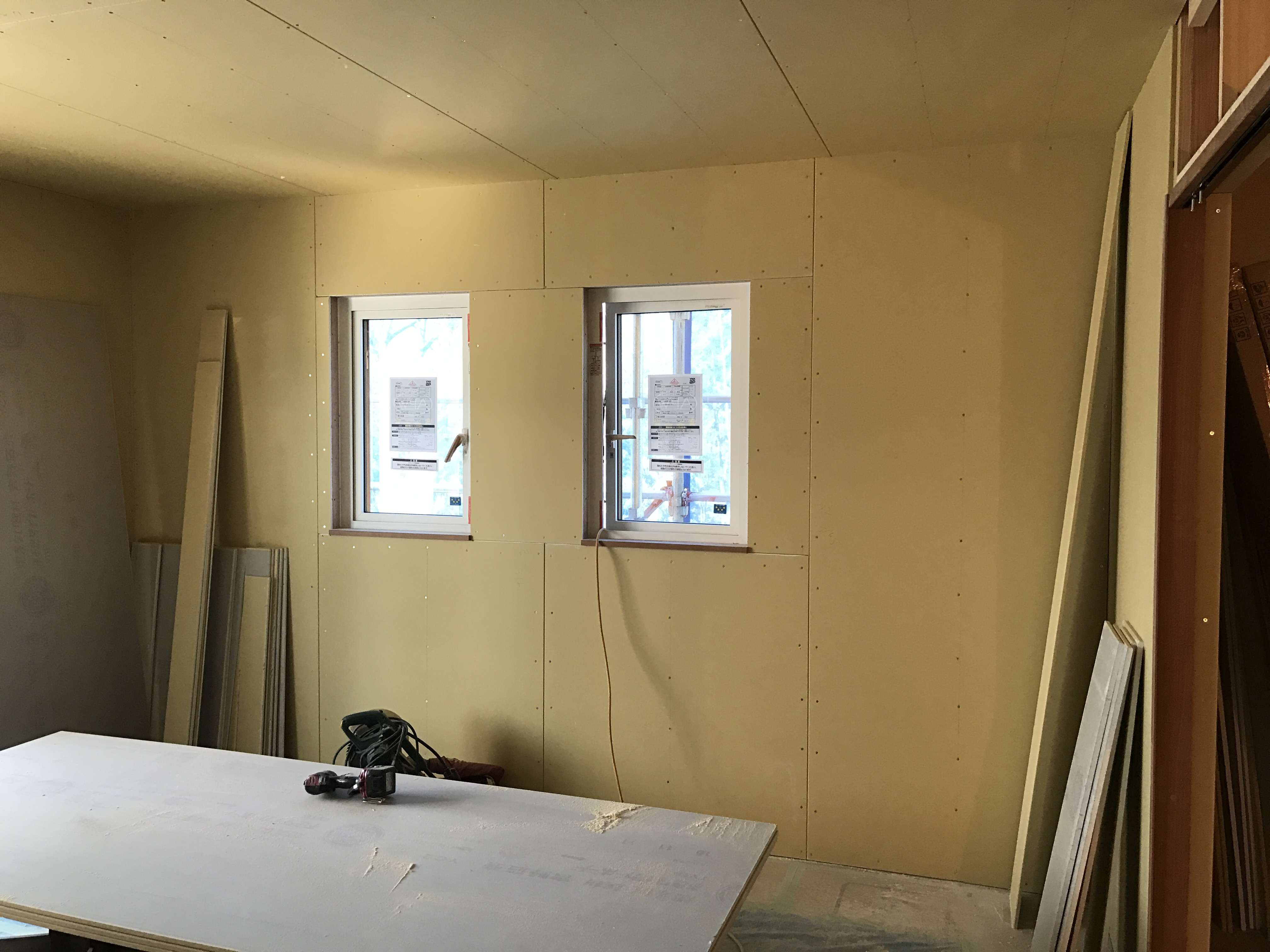 皆さんこんにちは😃 本日は、大月市のN様邸の現場状況の報告をします😊 只今、ボード貼りしていまして後少しで終わる所です✌🏻 外の外壁に関しましても8割方できてきていますので来月の上旬には足場も外せるでしょう😁 次回も皆様お楽しみに!!
