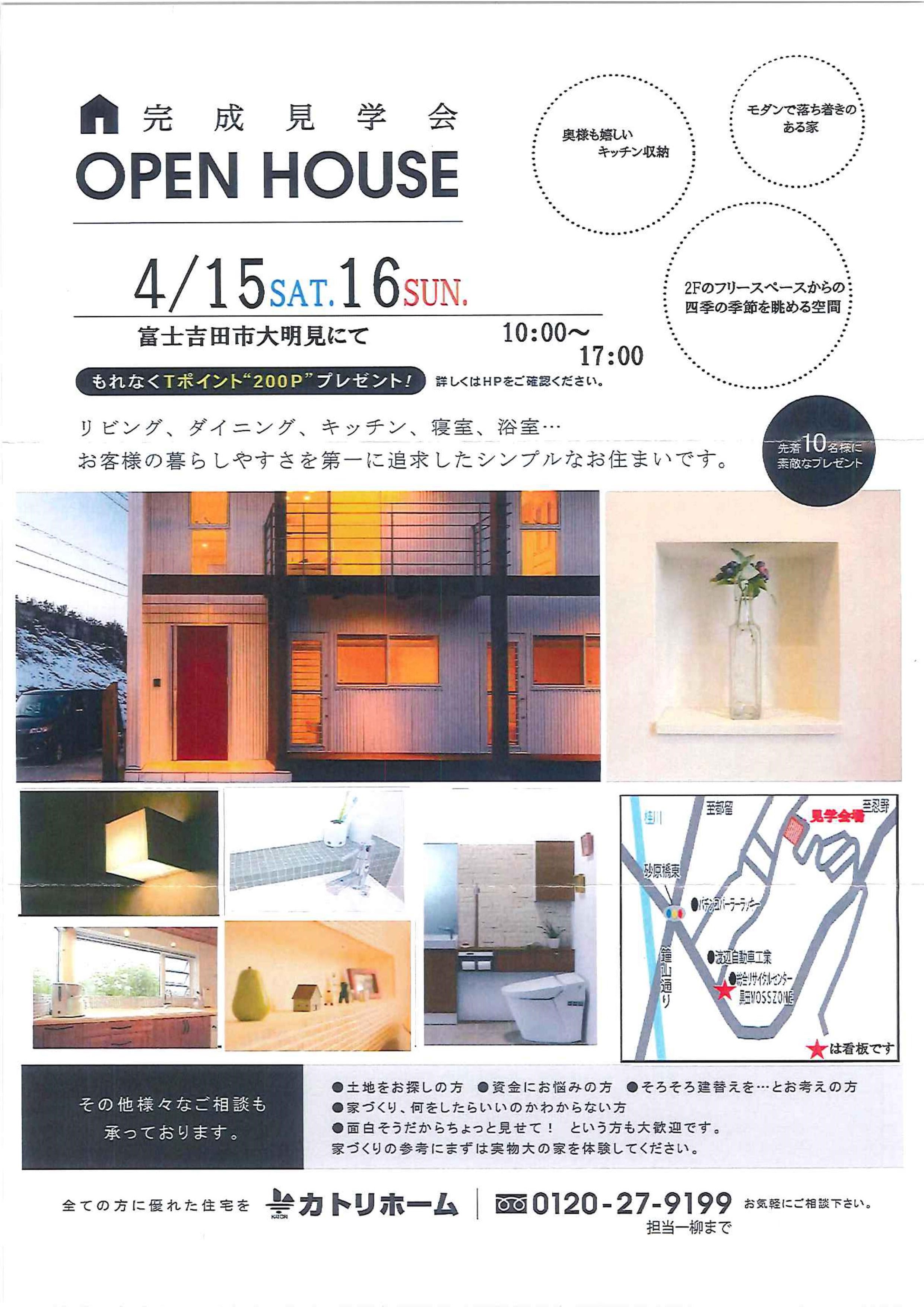 皆さんこんにちは。 今回は、富士吉田大明見にて完成見学会を 開催いたします。 今週の土・日ですのでお気軽に皆様のご来場お待ちしております。