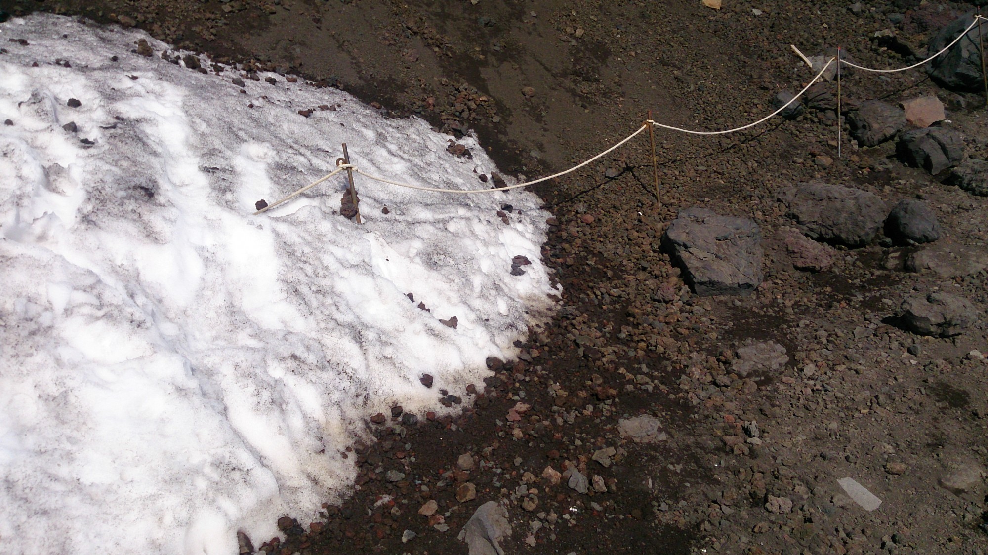 体力の衰えか、イメージ通りにガシガシ登れず。まあ最初はこんなものかと現状を受け入れ、楽しみながら登山者優先をモットーに登りました。8合目あたりから雪が周りに残ってました。