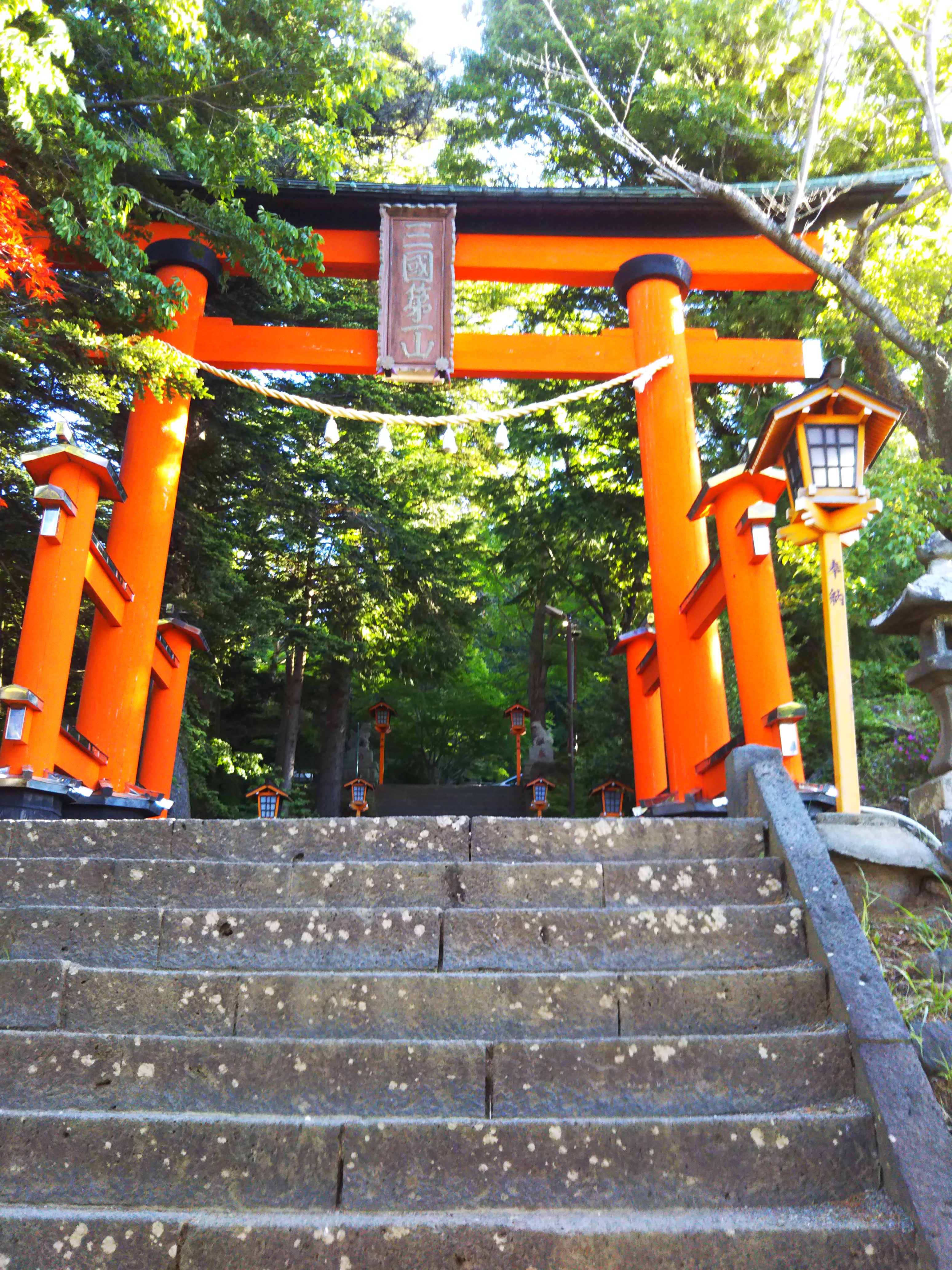 鳥居の下へ そこからまた階段を上がり 90段で富士浅間神社へ到着 ここから見た富士山です。