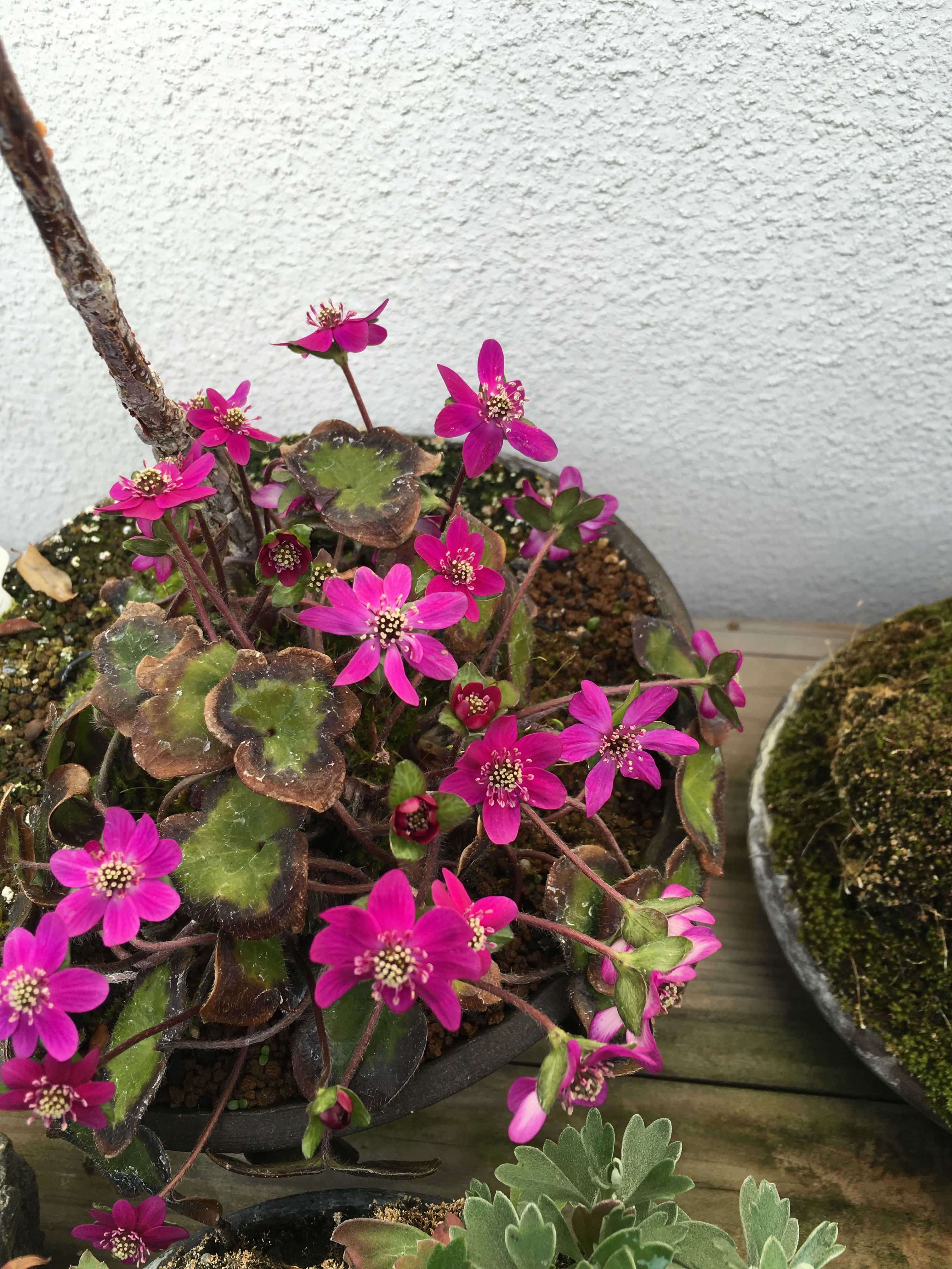 年明けから梅や椿(白侘助)、バイカオウレンと咲き出して我が家のベランダは