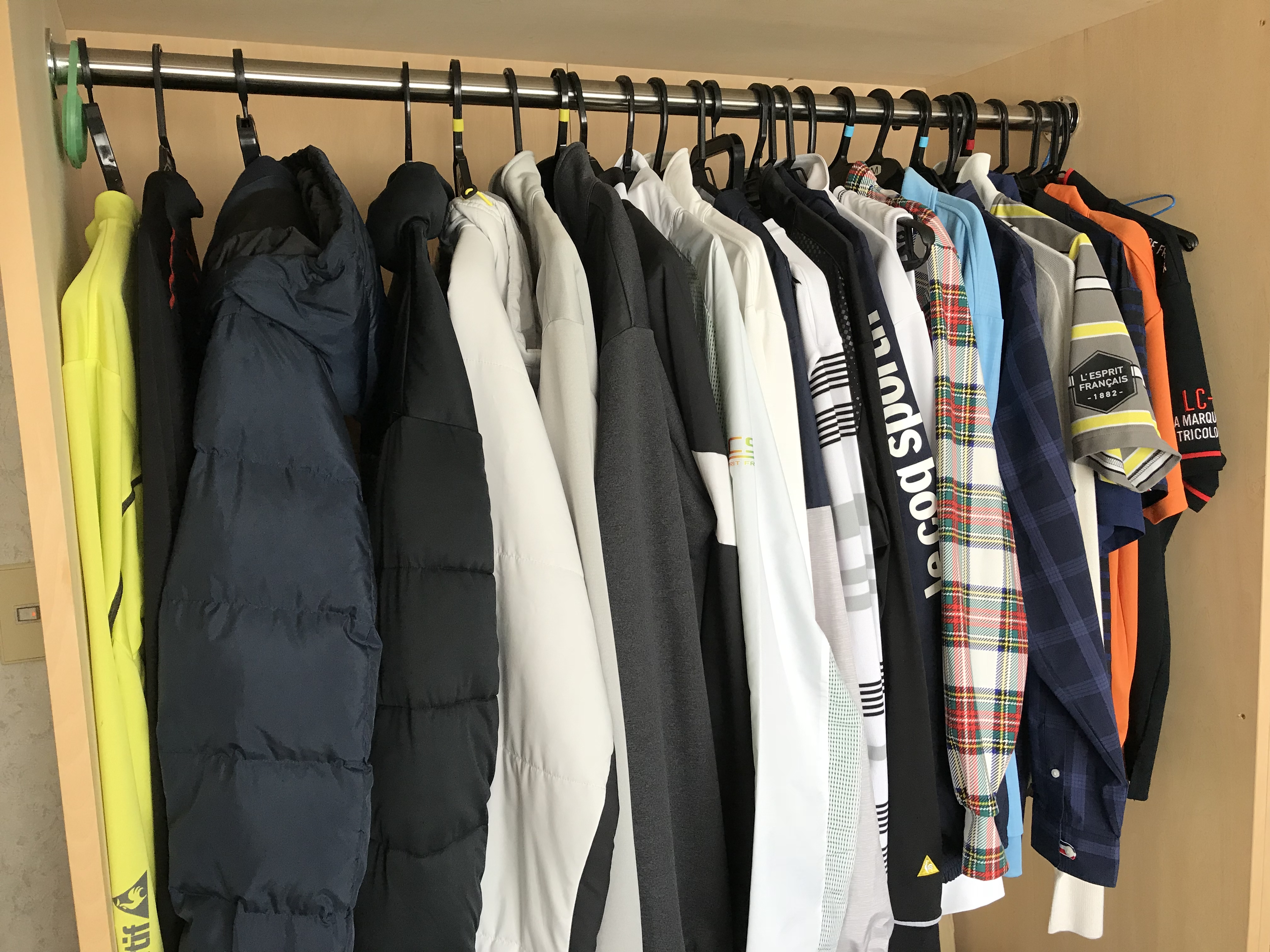 これは一部ですが、夏冬合わせてシャツや上着が約35着。パンツ類が12着。その他帽子、下着、靴下、