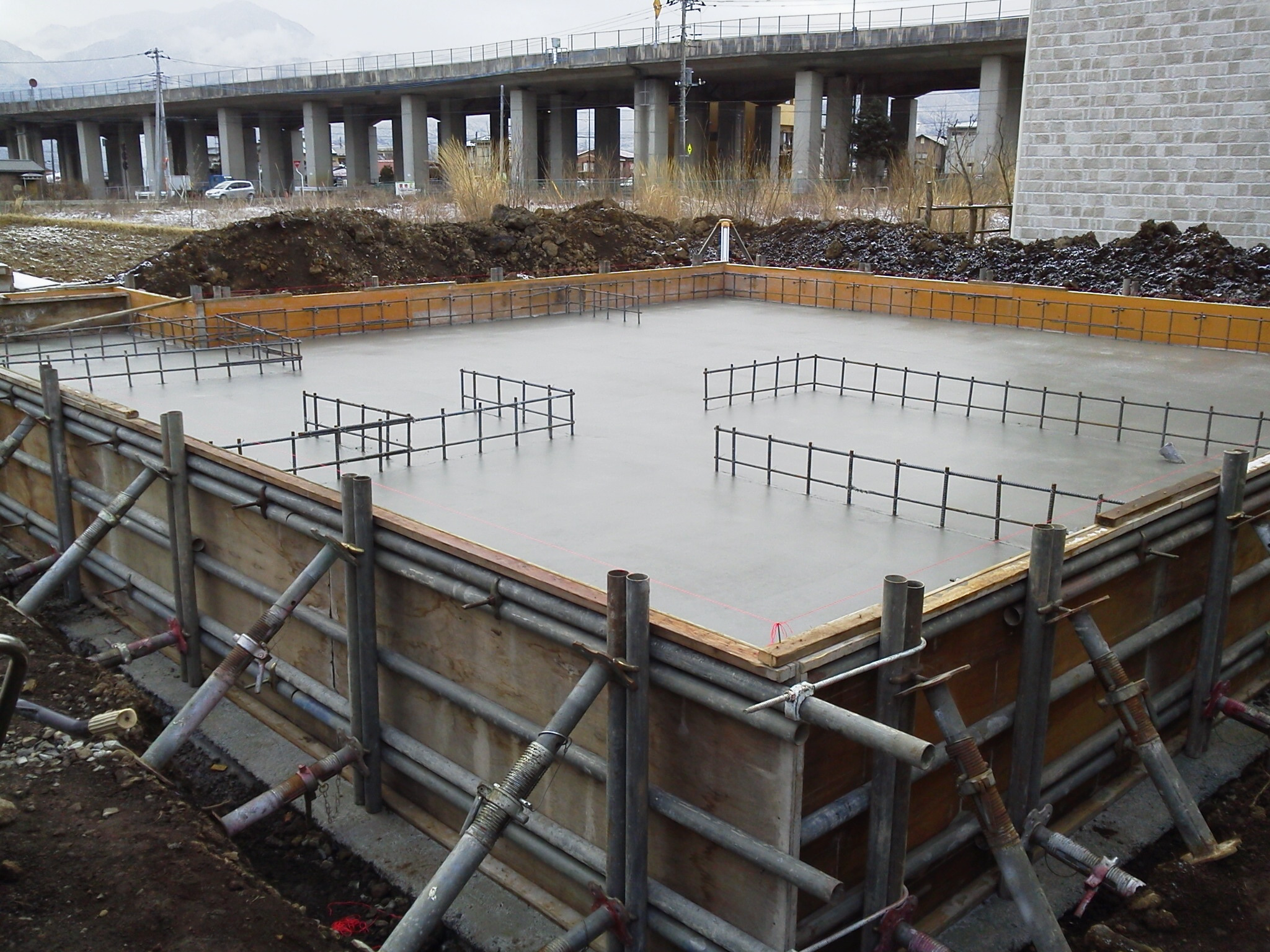 富士吉田市旭2町目 のO様邸の基礎の 状況です。 コンクリートを打ちました。 少し養生を取ります。