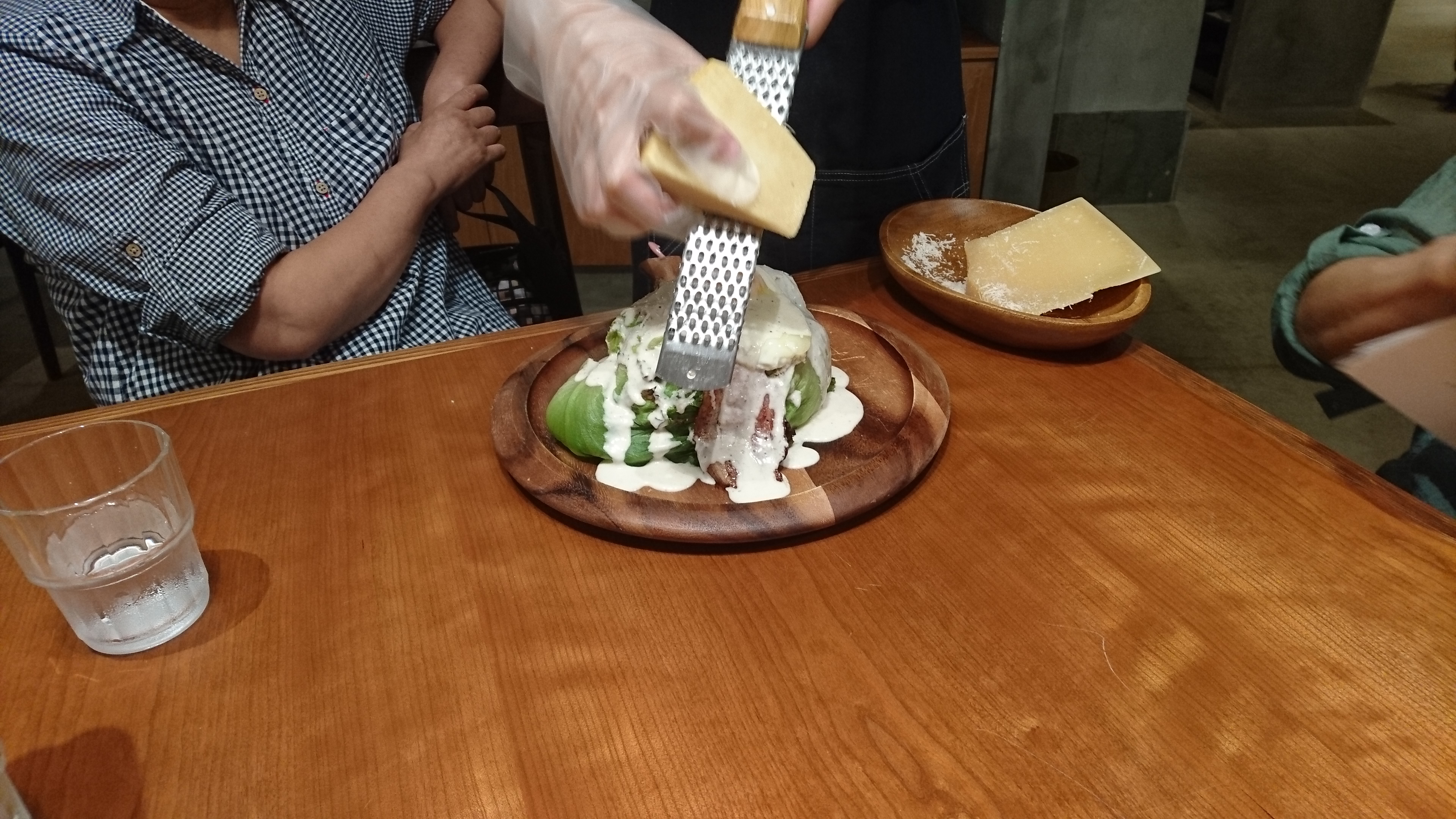 食べる前に店員さんがチーズをスライス