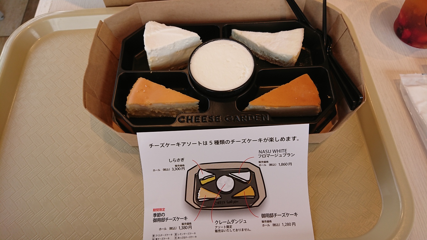 チーズガーデンというお店で5種類のチーズケーキの食べ比べが出来ます。 期間限定のレモン風味のチーズケーキが好み。 フルーツアイスティーも美味でした。