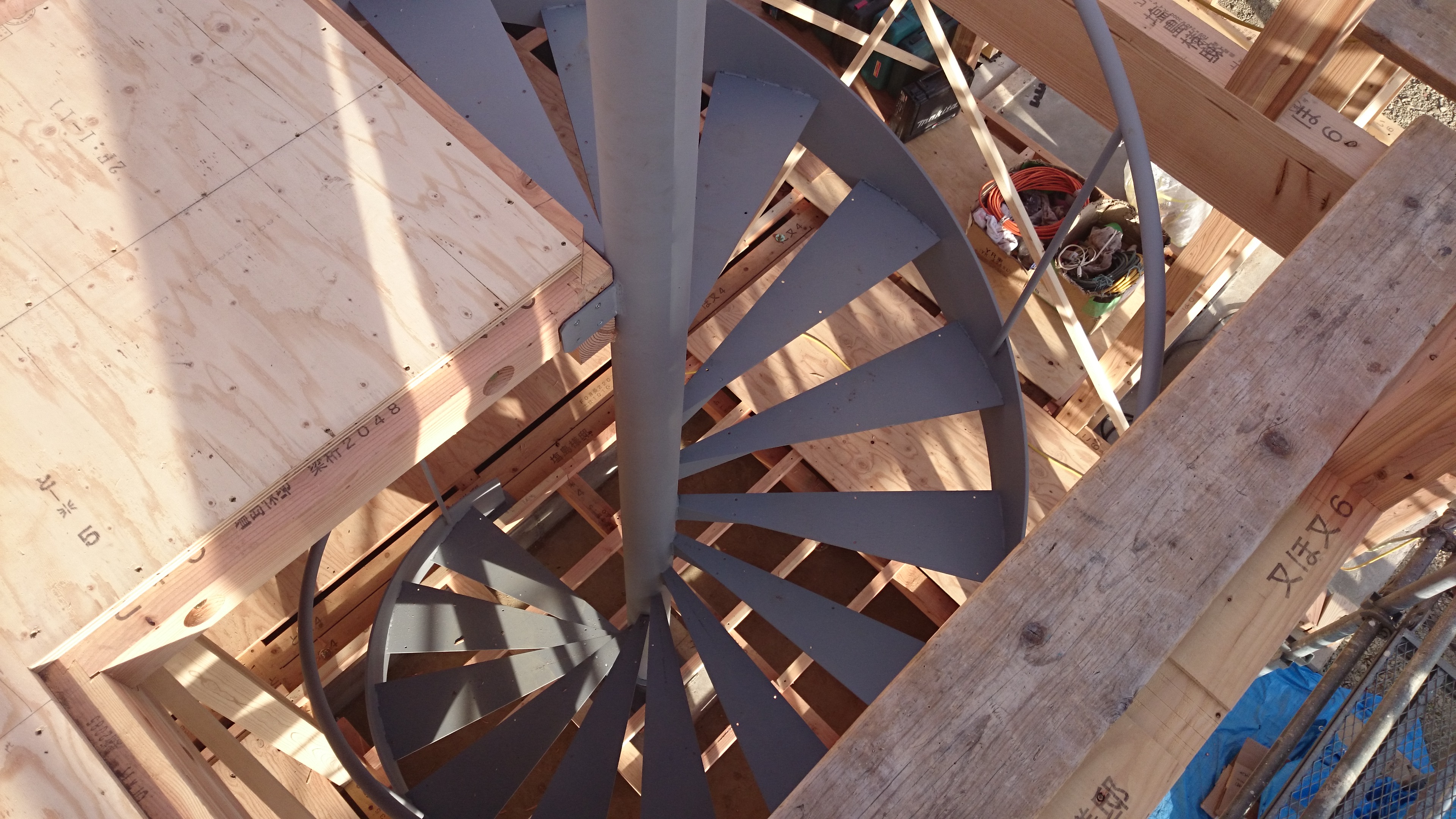 らせん階段鉄骨下地つきました。