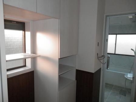 脱衣場にも建具で家具を作製し収納もバッチリです。