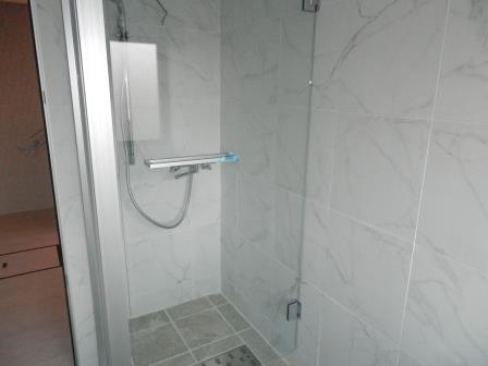 ガラスの扉に内部はガラスでシャワールールまで設置しました。