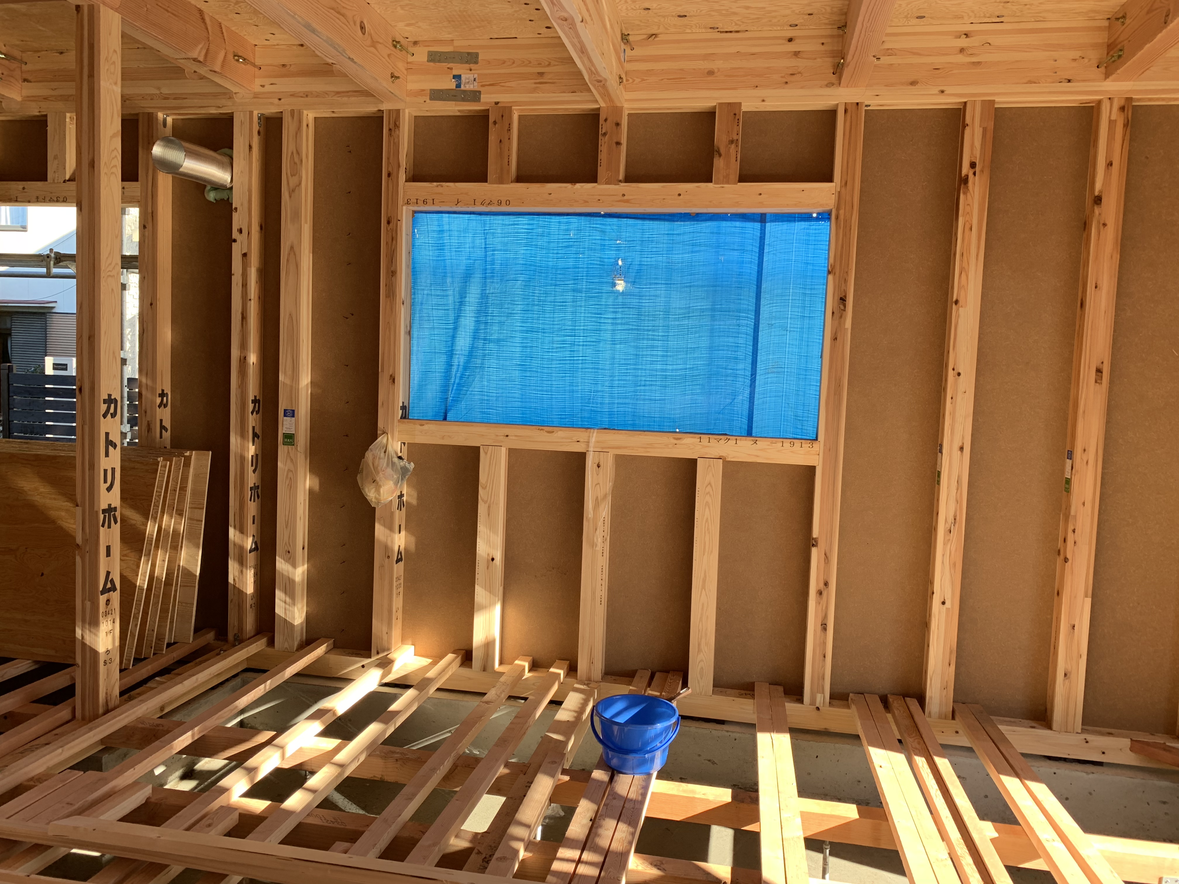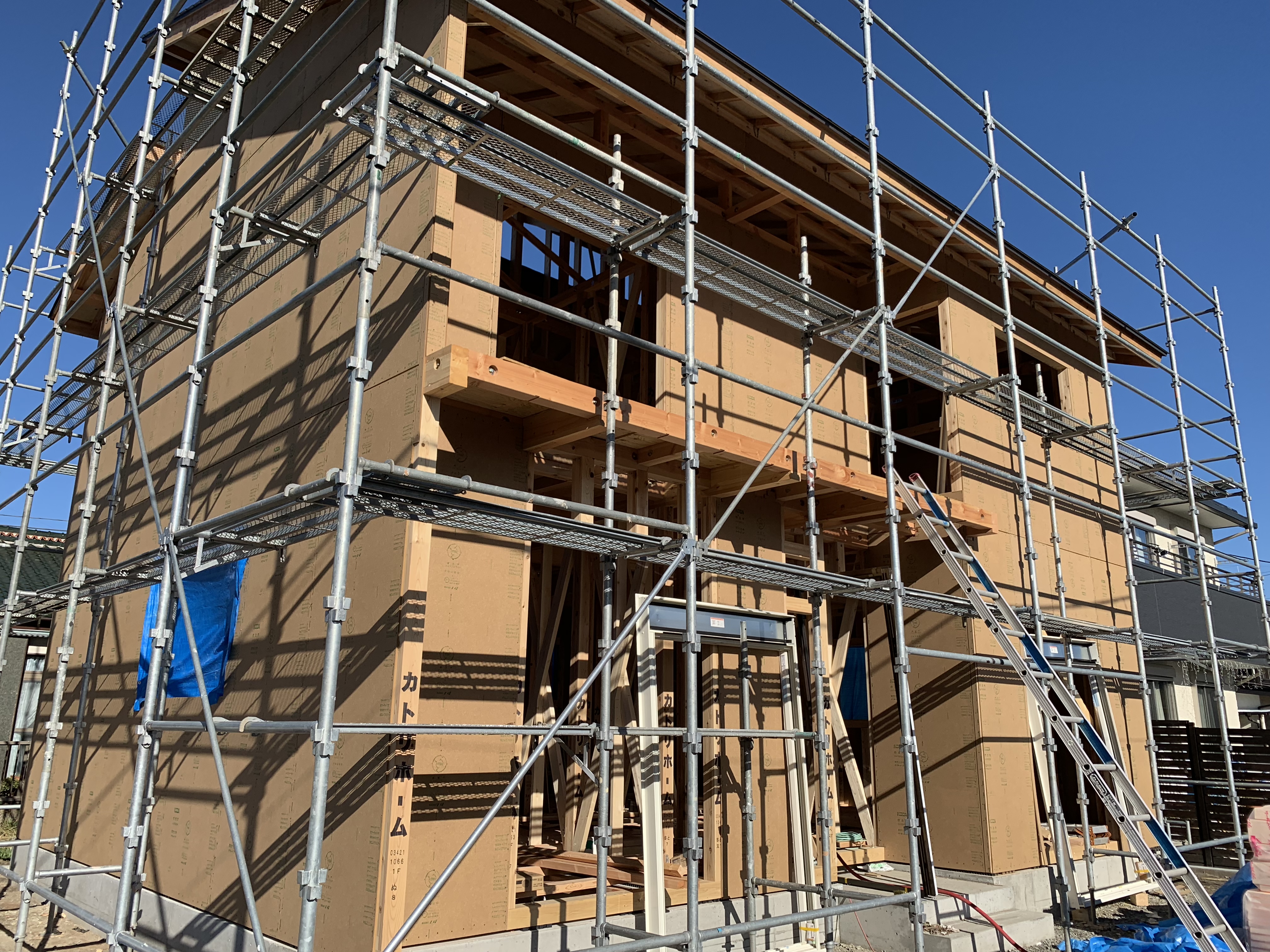 構造用面材も張り、徐々に家の形ができています。