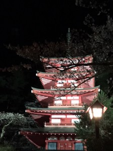 おはようございます。 昨日の強風・大雨にはびっくり(゜o゜) 台風並みの大荒れでしたね(^_^.) 午後から天候☀も良くなりお出掛け日和でした。 夜はお散歩にと、ご近所で今一番観光スポットになっている 忠霊塔へ行って来ました。 頂上まで397段の階段を登り切った先には・・・ ライトアップされた ★ 五重塔 ★ なかなか来る事のない場所ですが、とても綺麗です(*^_^*)