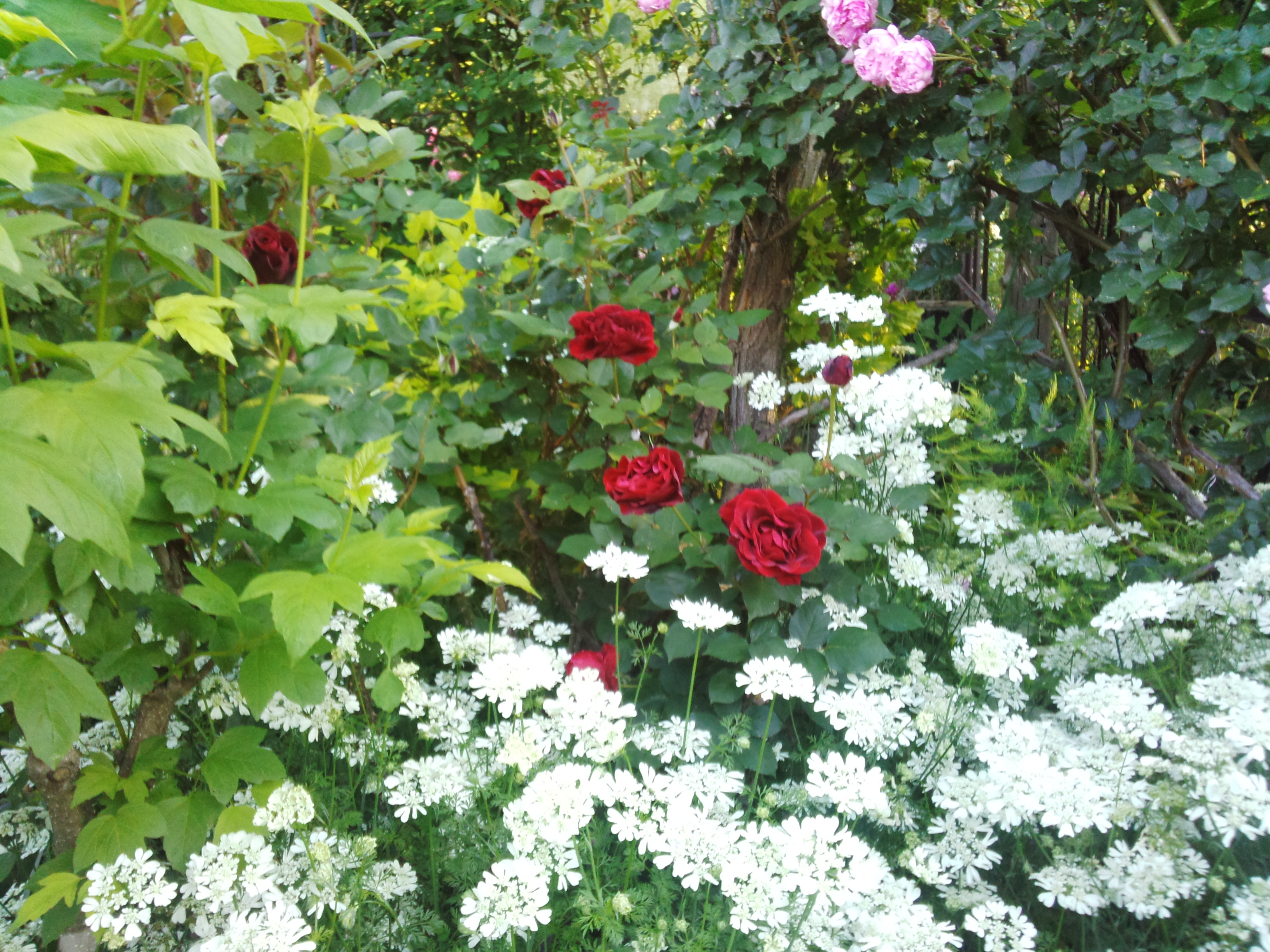「サントラップガーデン」内のバラも待ちに待った開花が一斉にスタートし、バラの開花に合わせるように、下草も素晴らしいシーンを造りだしています。