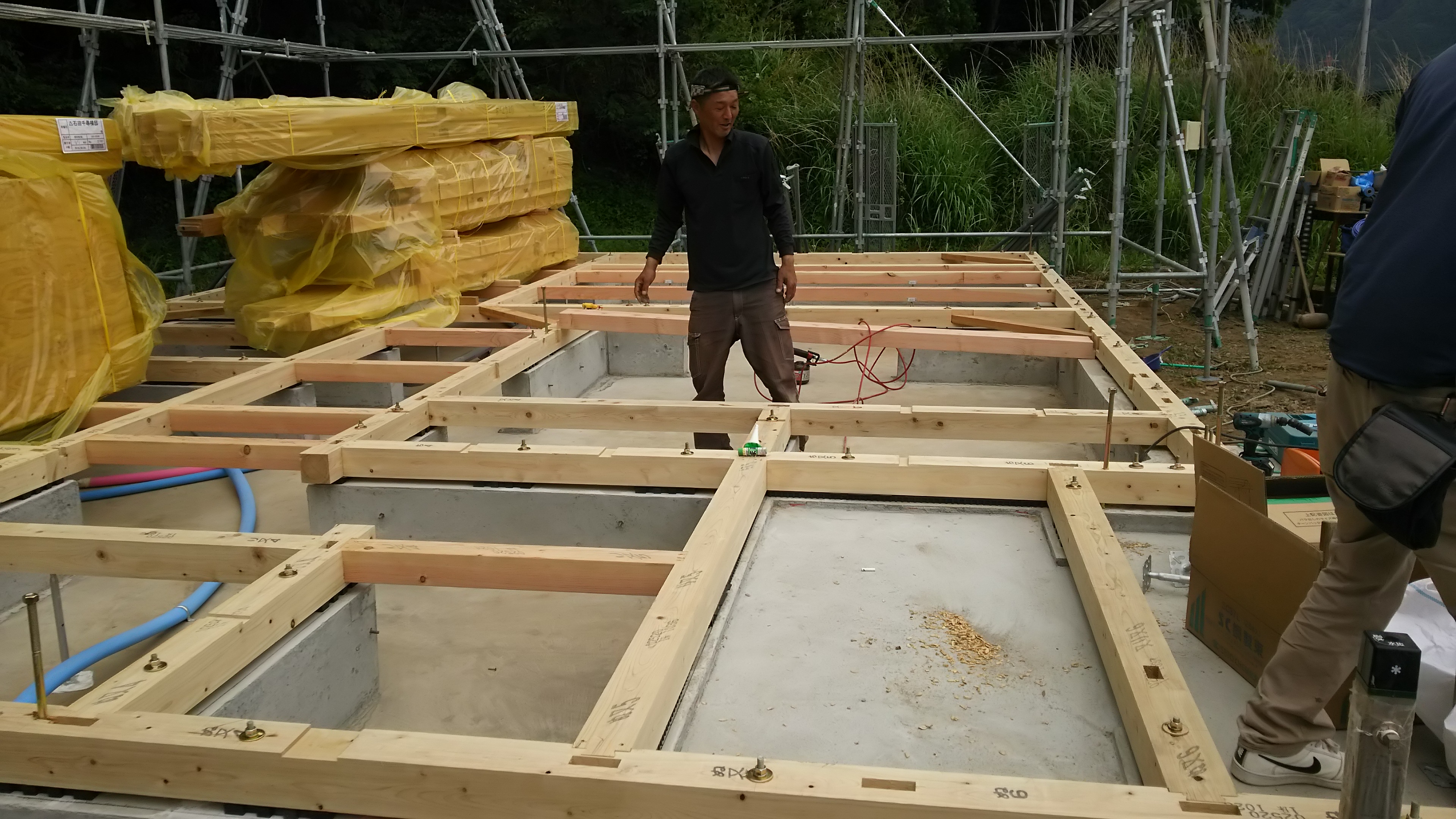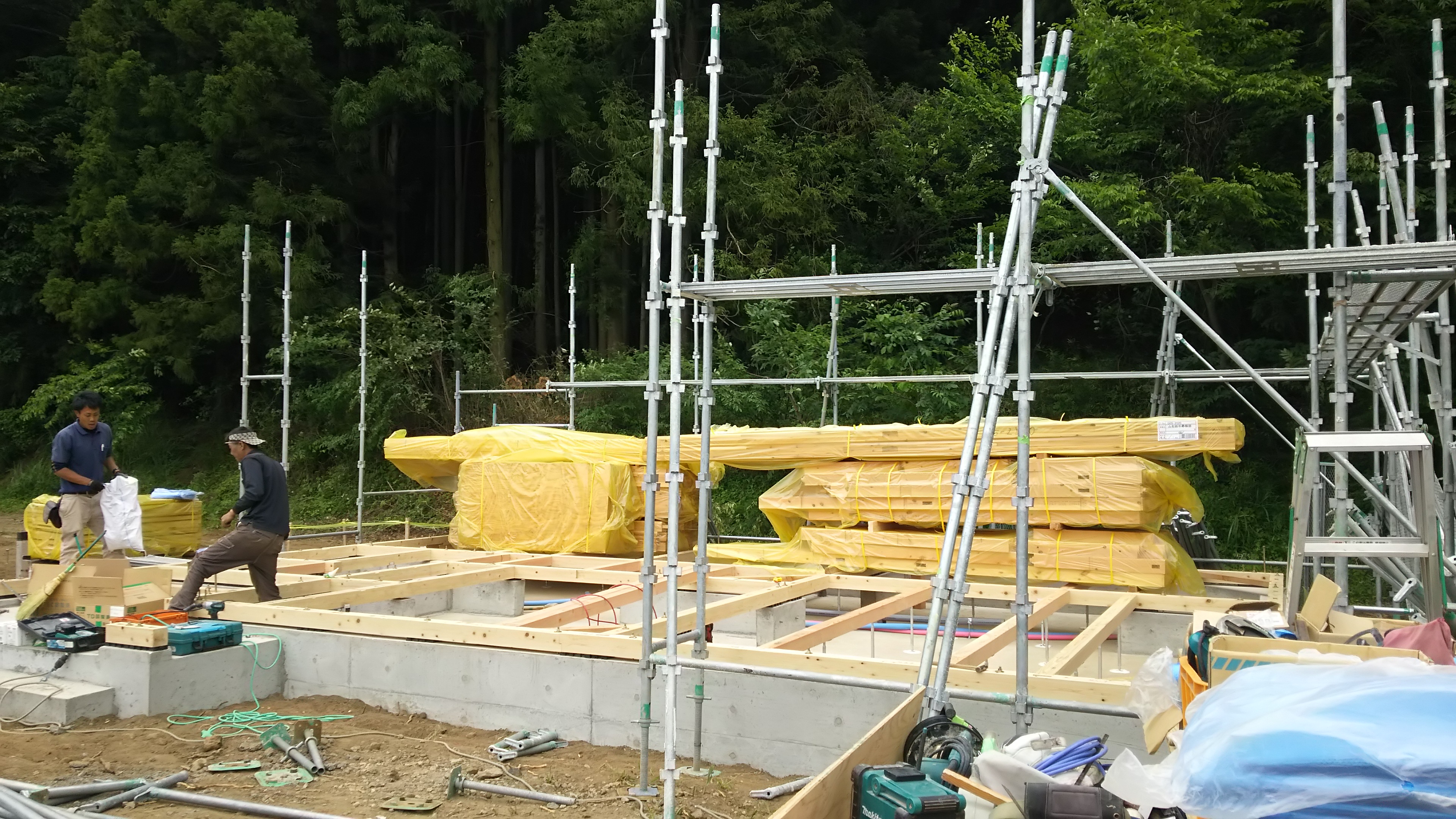 本日、土台回し&足場組立に取り掛かりました! 一日一日、着々と進んでおります。 積んである柱が6/6~7日で組まれていきます! 興味がある方は是非組まれていく柱をご覧になってみては? ご案内は私、I様邸担当宮下まで! フリーダイヤル 0120-27-9199