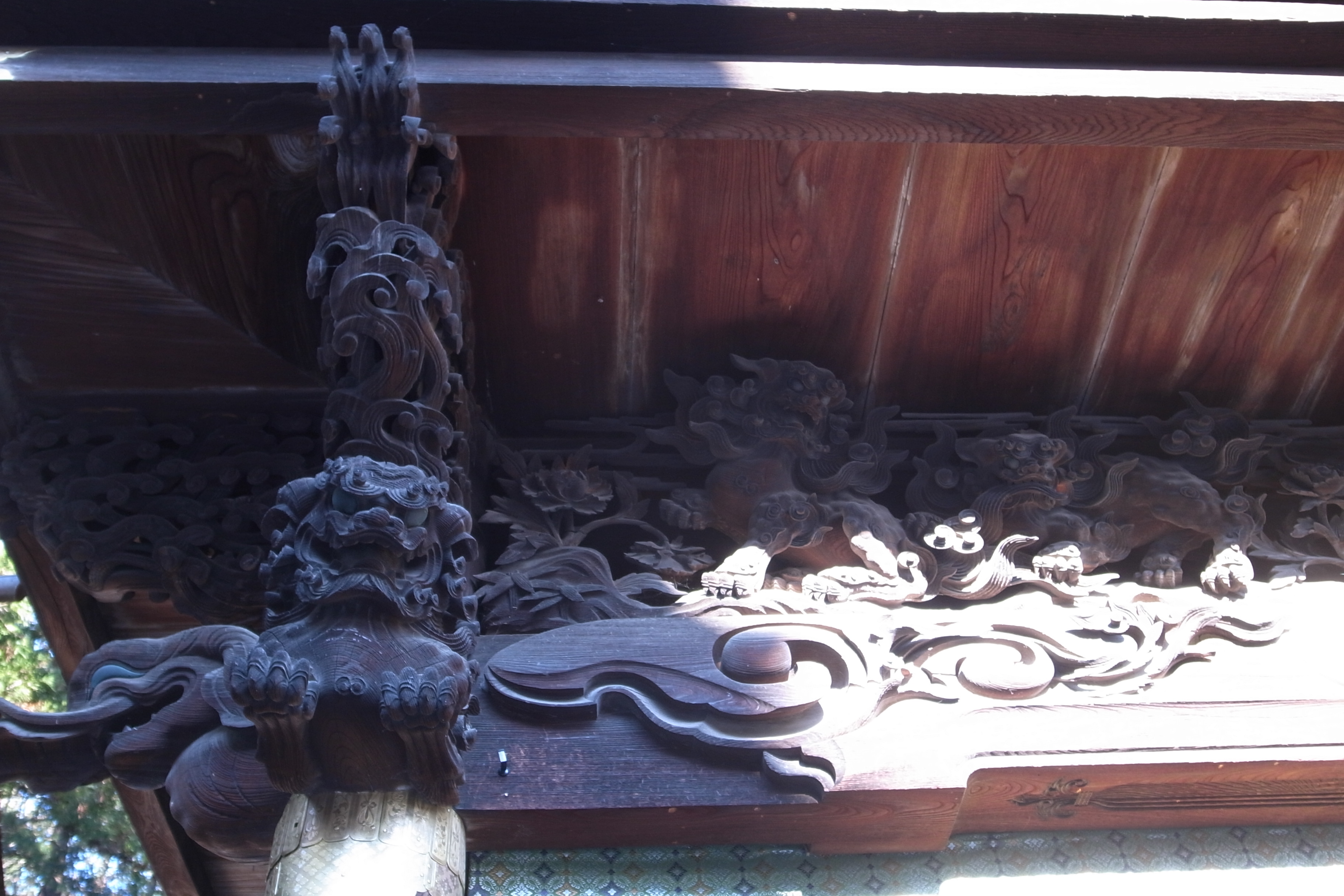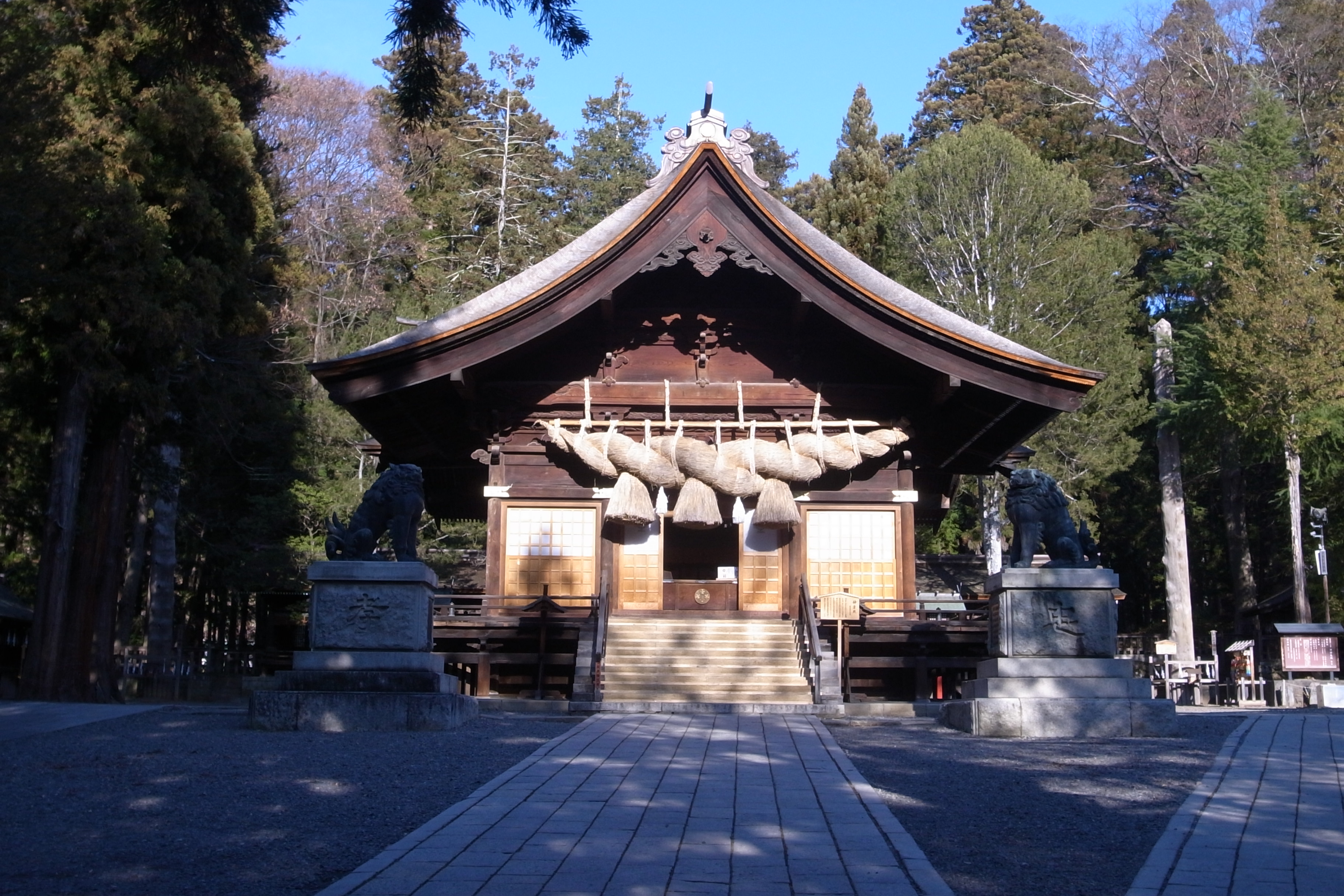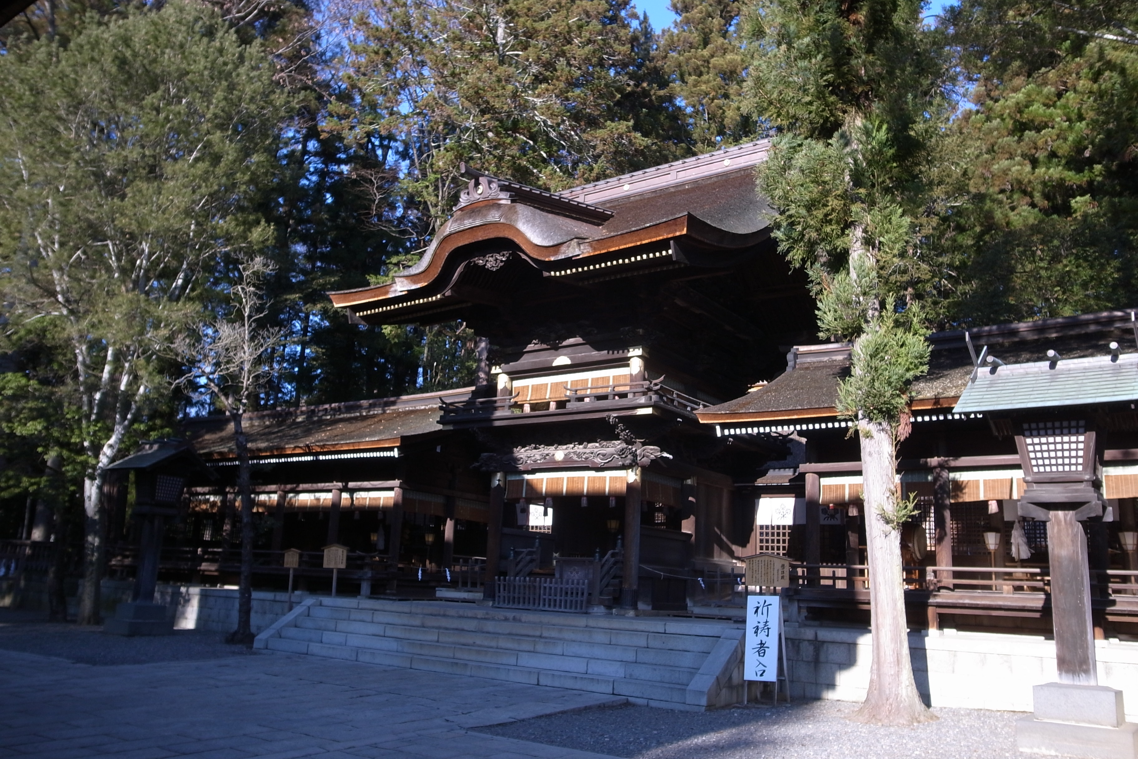 境内の正面に秋宮、その奥に春宮、建造にあたり、江戸時代を代表する2つの流派が競い合って秋宮と春宮を建てたとのこと、