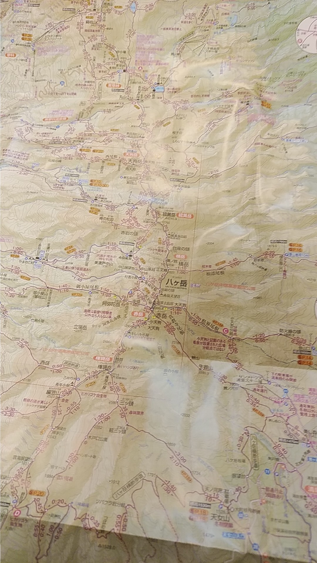 この地図は八ヶ岳。2日間くらいかけて全て縦走したい。昔だったら1日でと考えそうですがゆっくりしっかりが今風(笑)