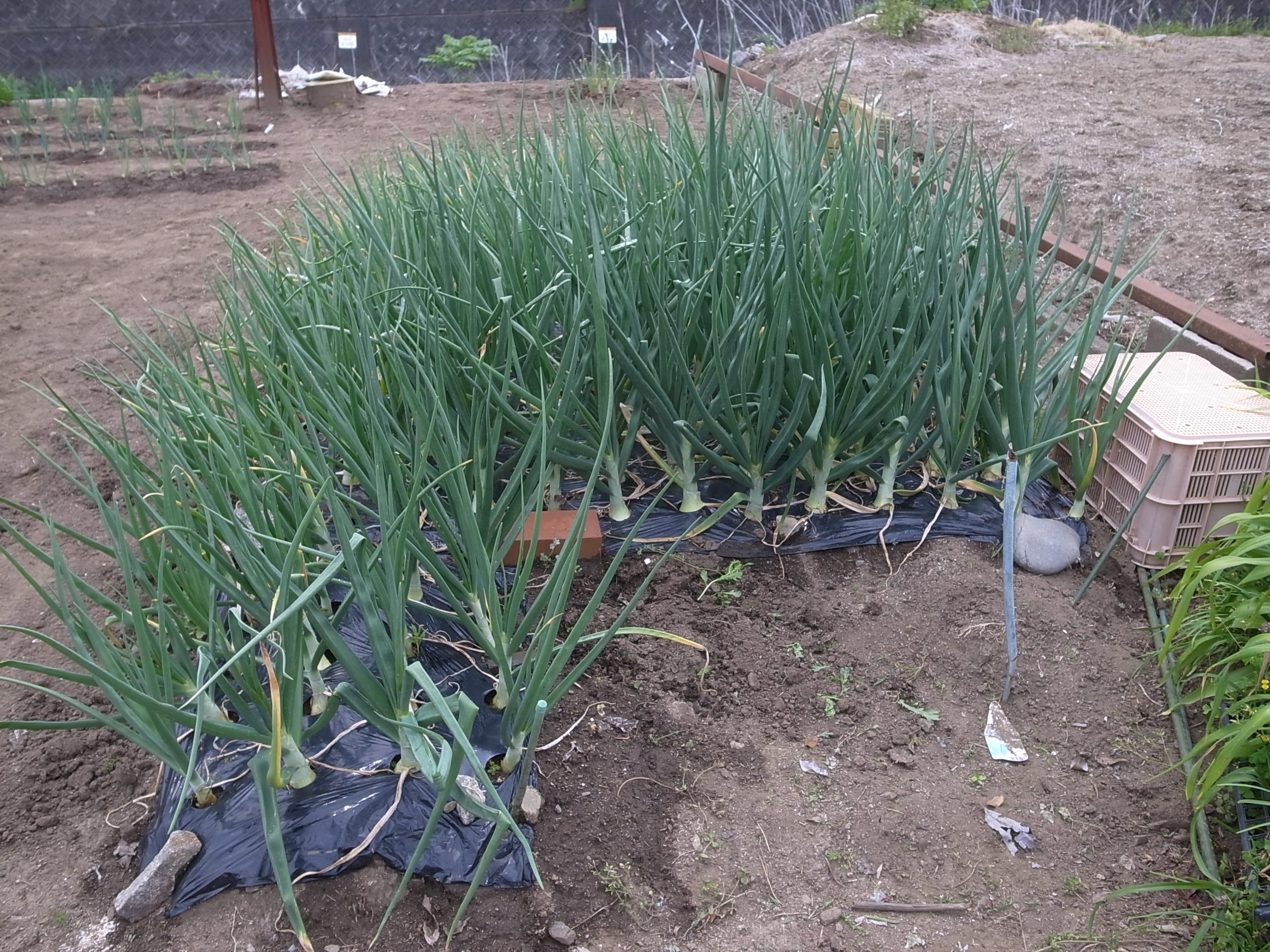 前に植えておいた玉ねぎは結構な大きさに生っており、長ネギも畑になじんでいる