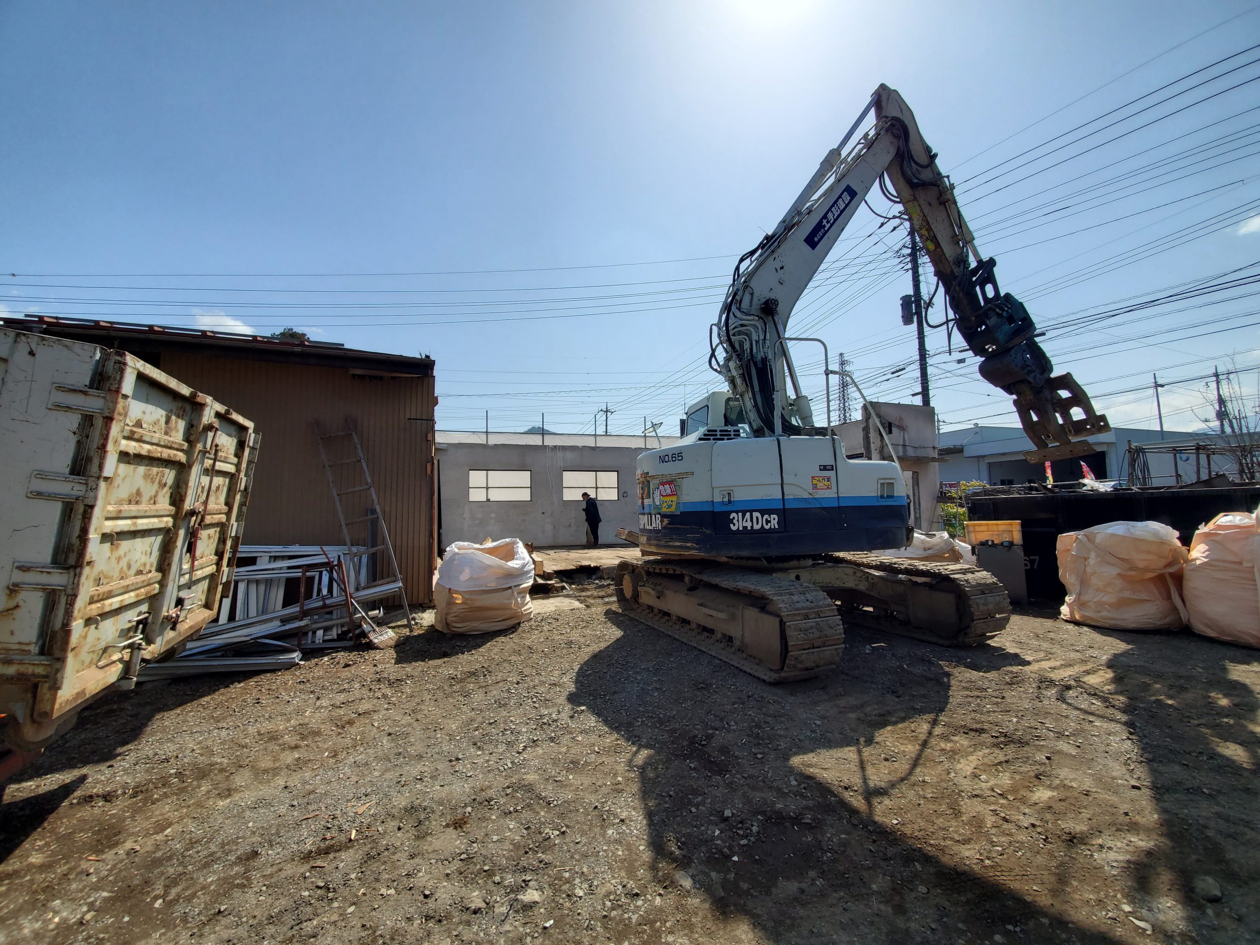 富士吉田市下吉田でS様邸工場の解体が行われております。