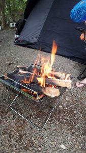 家族キャンプ、ソロキャンプもあちらこちらで盛大に焚火が燃え上がっている。
