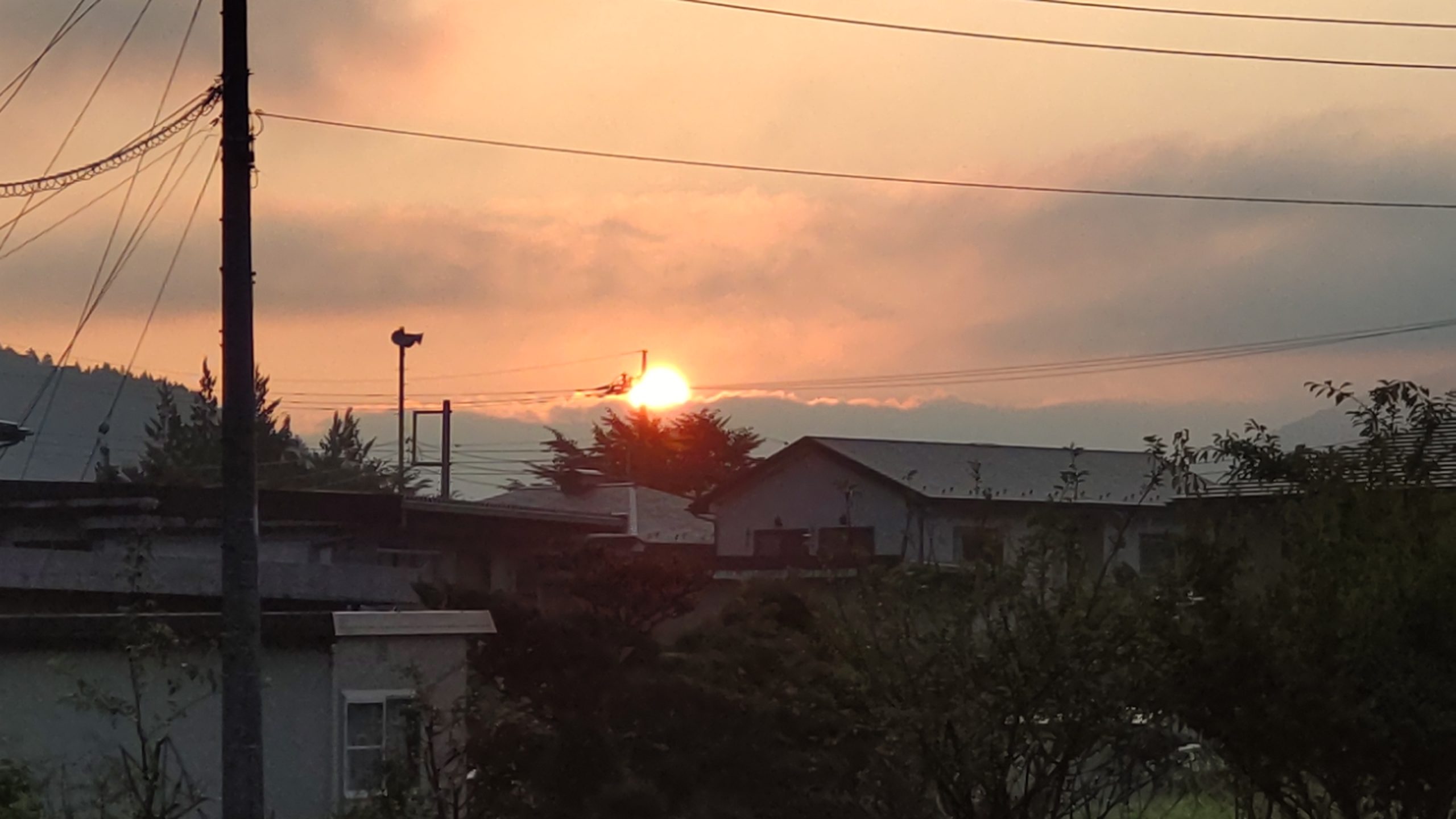 普段は5時といえば日が出ていますが、歩き初めは比較的清々しく歩く事が出来ますが、家に帰るころには汗だくになってしまいます。いっとき陽が出ました。