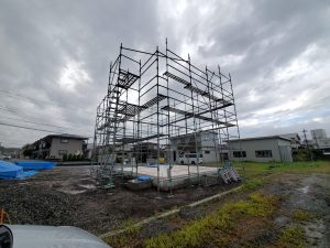 富士河口湖町船津で工事中のU様邸が本日大工工事に入りました!