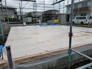 雨が降っているのでしっかりと養生を行い明日から建て方。