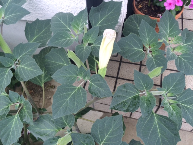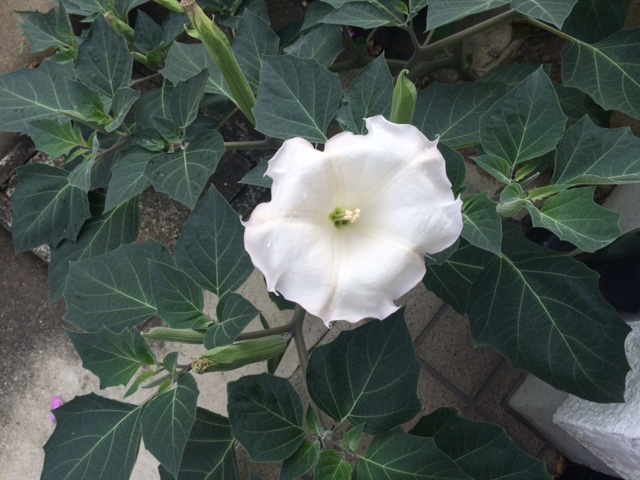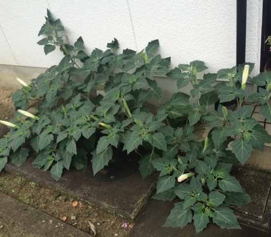 何でしょうか? ++; 玄関横のスペースにわさわさと、何か生えてきました。 私が植えたんじゃないんですよ。 白い大輪の花が咲きました。 とりあえず綺麗だから、まっいいか ^^