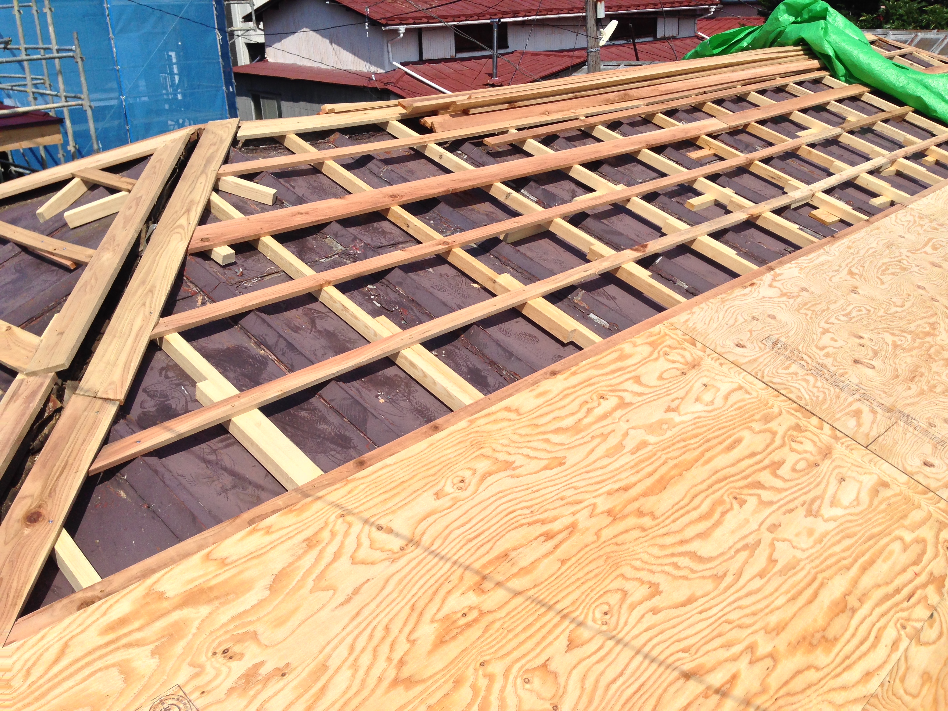 既存の垂木関係がしっかりしていたので、これを軸に屋根の歪みを修正しながら