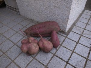 一週間後にタマネギの苗を植えました。しっかり冬を越してもらいたいものです。 タマネギの床造りをしたときにさつまいもの収穫もしました。昨年よりも大きなさつまいもとなっており、