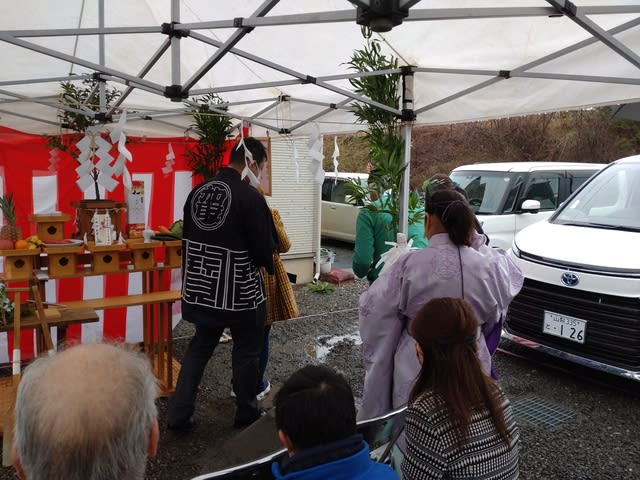 神主様と共に、敷地内を 四 方 清 め ・・・